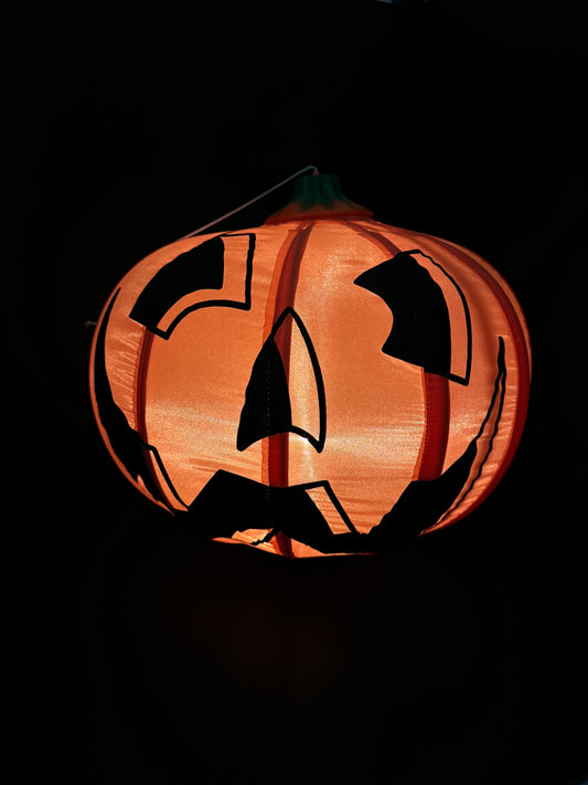 Vintage Halloween Decoration - Hanging Collapsable Fabric Light Up Jack-o-Lantern - 1998 Trendmasters