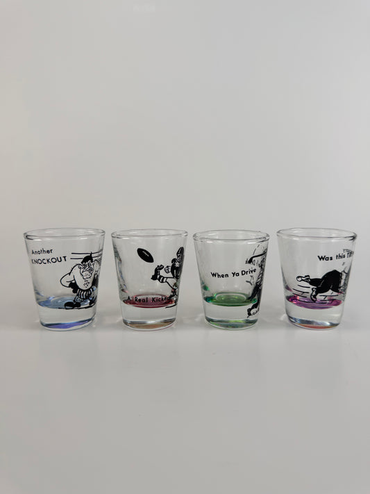 Vintage Barware - Kitschy Sports Humor - 1950s Shot Glass Set of 4