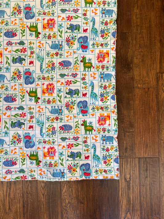 Vintage Linens - 1970s Baby Blanket Quilt - Animal Print Synthetic Fleece