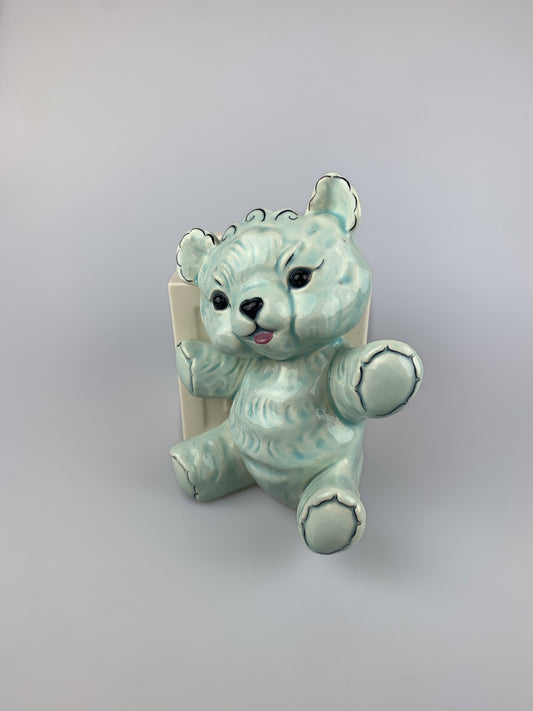 Vintage Kay Finch Blue Teddy Bear & Alphabet Block Ceramic Planter - California Pottery