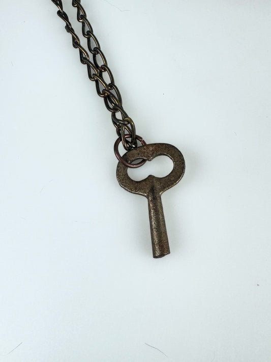 Skeleton Key Necklace - Vintage Old Stock and Antique Materials - Medium length 25" Brass Chain