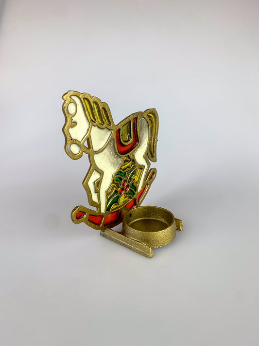 Vintage Stained Glass Cast Iron Candle Votive - Christmas Rocking Horse