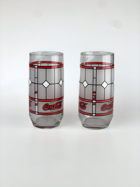 Vintage 1985 Libbey Glass Coca-Cola Frosted Tumblers - Set of 2