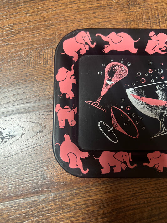Vintage Barware - Pair of Snack Trays - Mid Century Pink Elephants