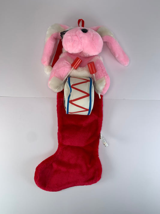 Vintage Christmas Decor - Energizer Buny Stocking - Pink Bunny Plush - 1993
