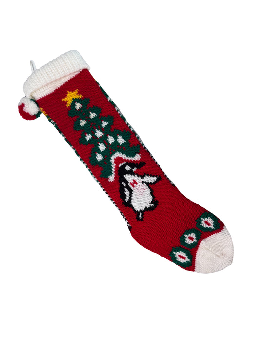 Vintage Christmas Decor - Heavy Knit Stocking - 24" Penguin Design