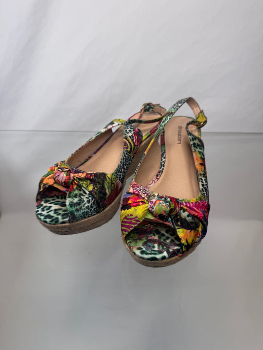 Dress Barn Multi Color Lotus Print Espadrille Wedge - Size 7.5