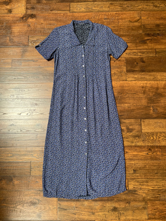 Vintage Clothing - Button Front Short Sleeve Dress - Blue Floral - Medium