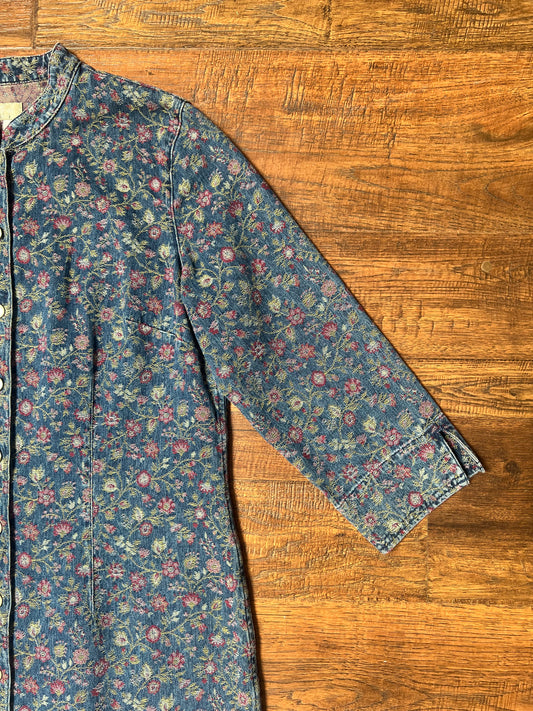Vintage Clothing - Jacket - Blue Floral Denim Button Up Jacquard Long Shirt Dress - The Territory Ahead - Size 12