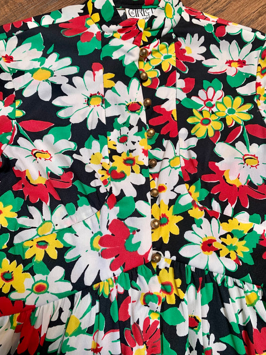1970s Vintage Cirette California A-Line Mini Dress - Black Autumnal Florals