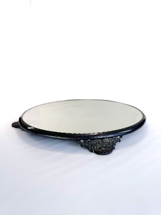 Antique Plateau Dressing Table Mirror - Beveled Edge and Silver Plated Feet - 12"