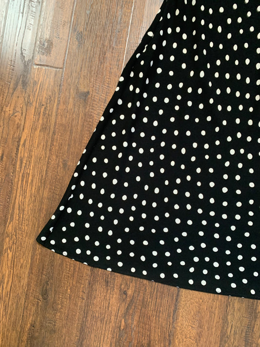 Vintage Clothing - Fit and Flare Midi Dress - Black with White Polka Dots - S.L. Fashions - Medium