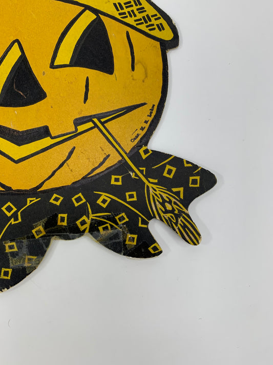 Vintage H.E. Luhrs Halloween Die Cut - Scarecrow Jack-O-Lantern - Made In U.S.A.