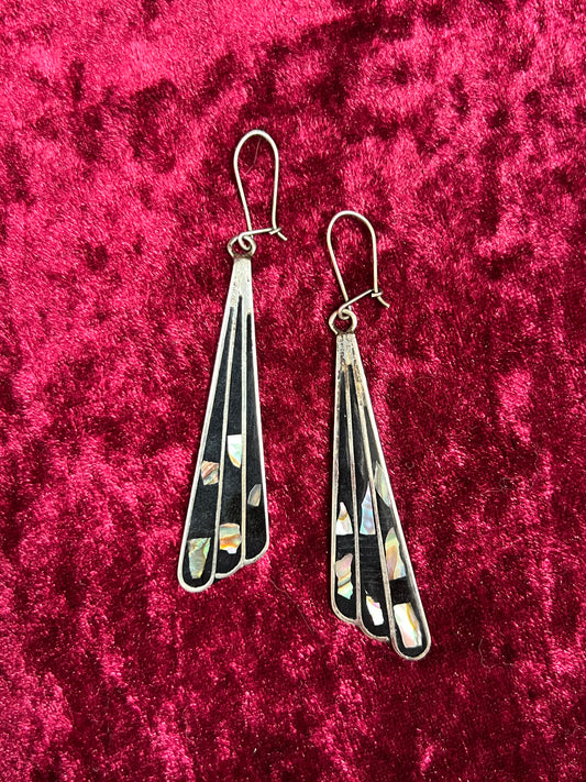 Vintage Jewelry - Sterling Silver Earrings - Inlaid Niello and Abalone Shell - Mexico