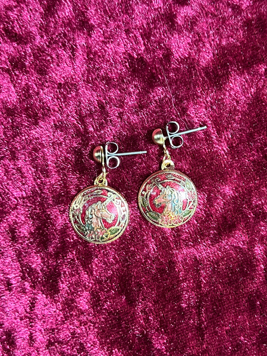 Vintage Jewelry - Earrings - Cloisonné - Unicorns - Made In Taiwan R.O.C.