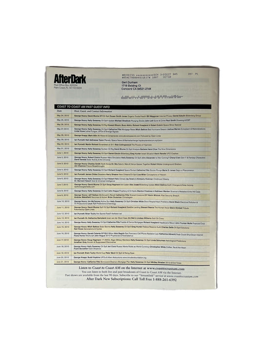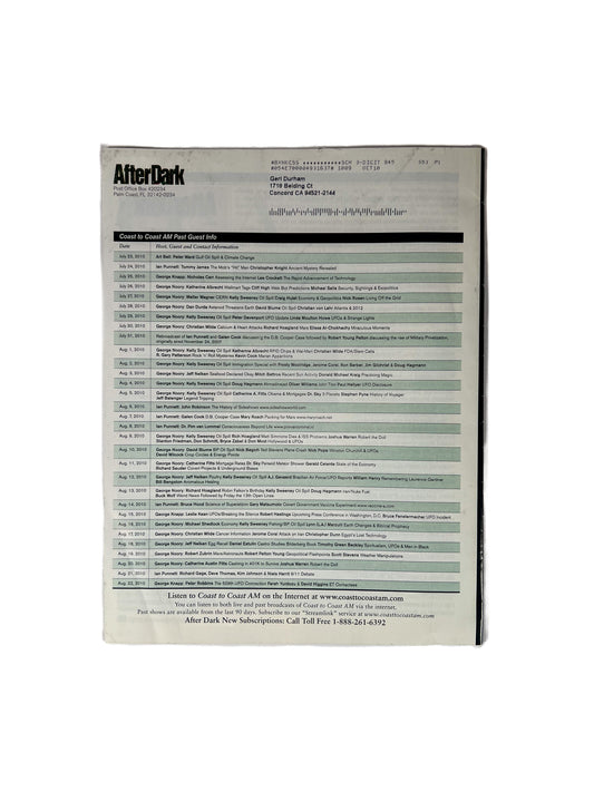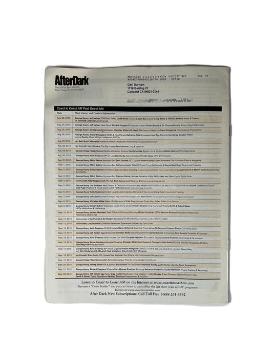 Ephemera - After Dark Coast to Coast AM Magazine - What Remains Are the Questions - September 2010