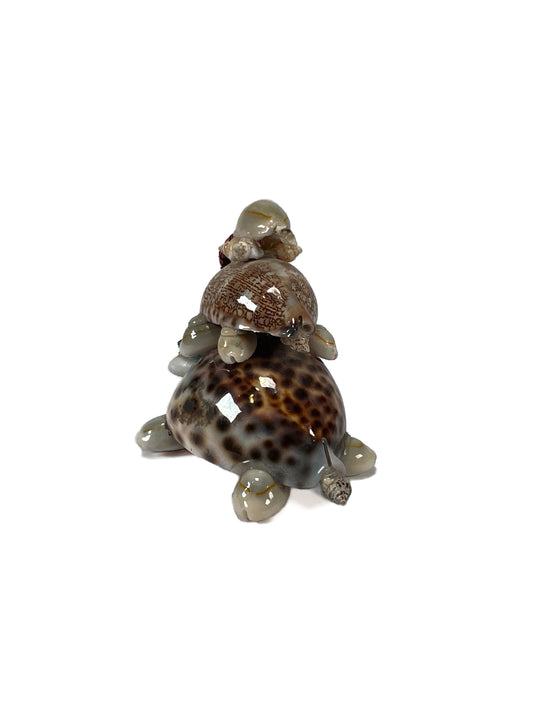 Vintage Trinket - Seashell Souvenir - Bobblehead Turtle Family