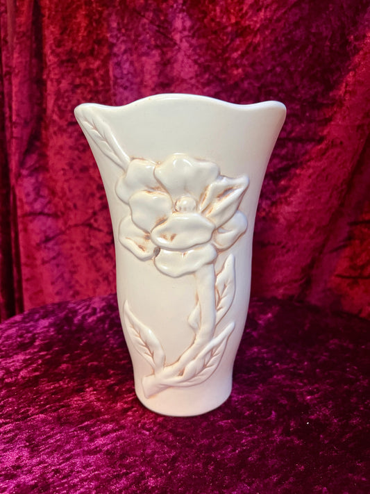 Vintage Home Decor - Vase - Sculptural Rose in Matte White - Red Wing Pottery