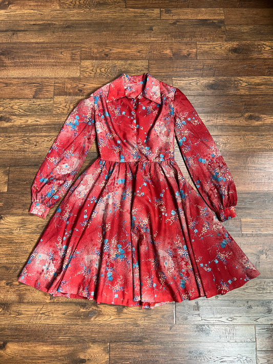 Vintage Clothing - Hand Sewn Kimono Robe - Abstract Floral Pattern - Crepe Silk - OS
