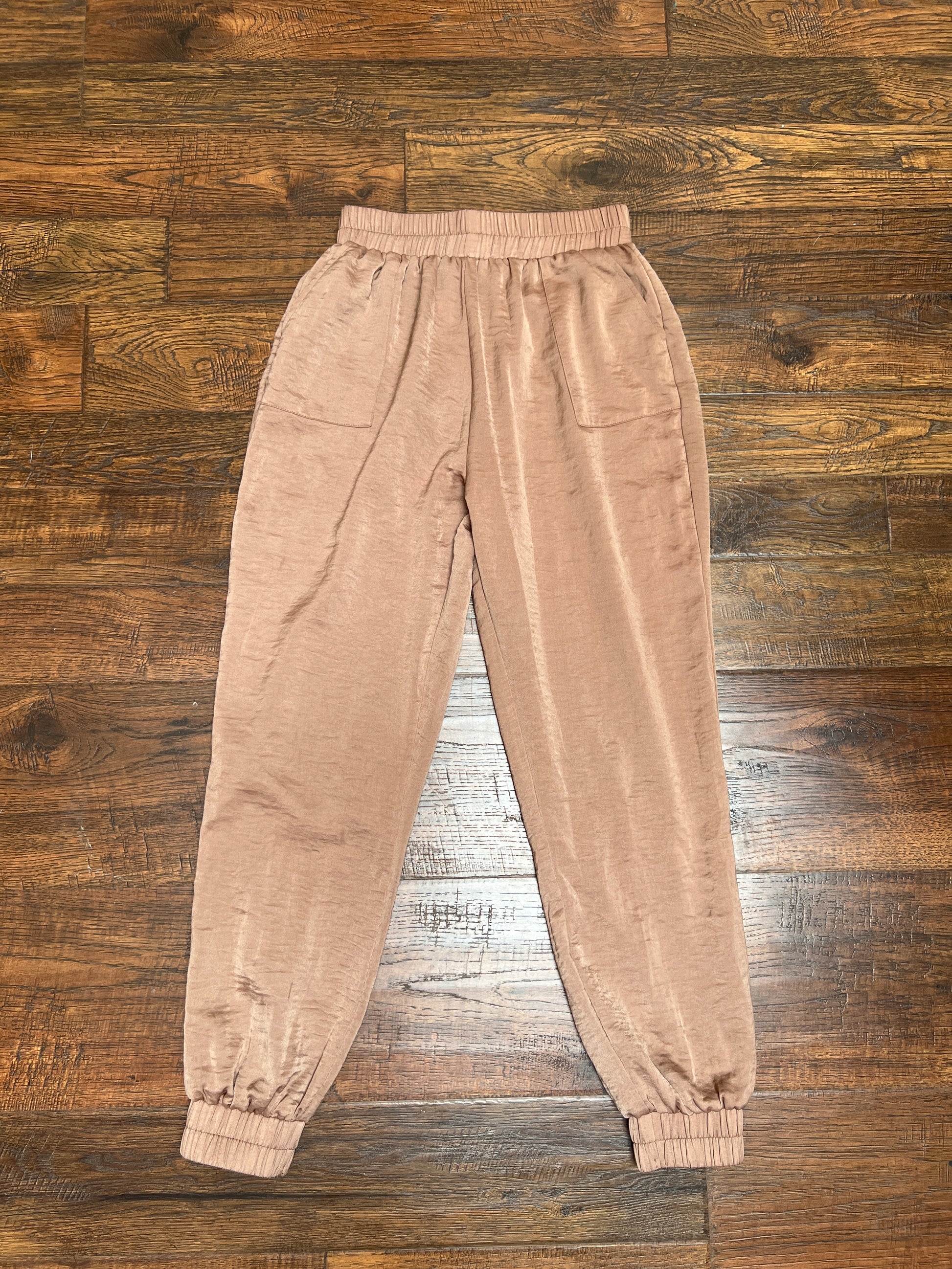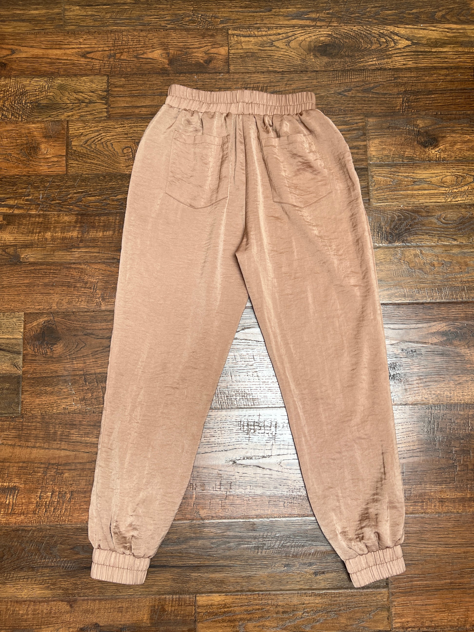 Clothing - Elastic Waistband Silky Pants - Taupe Brown - X-Small - Amaryllis