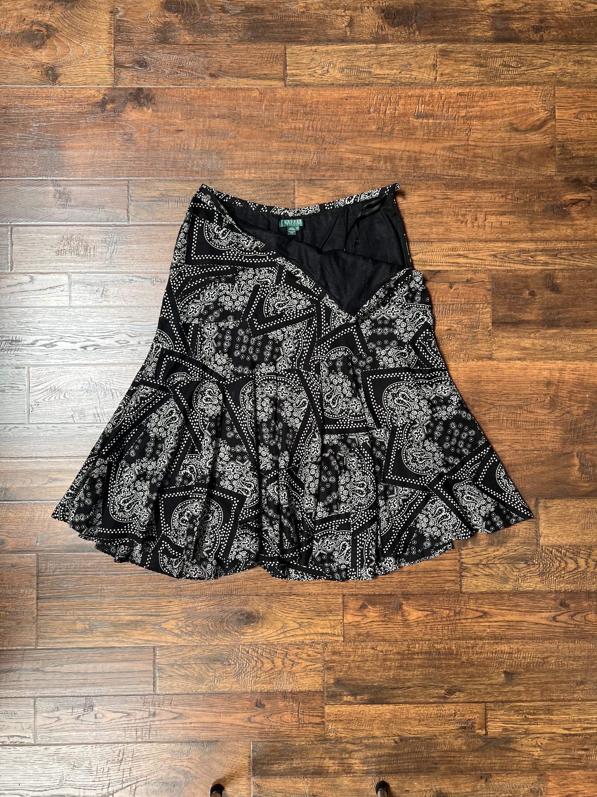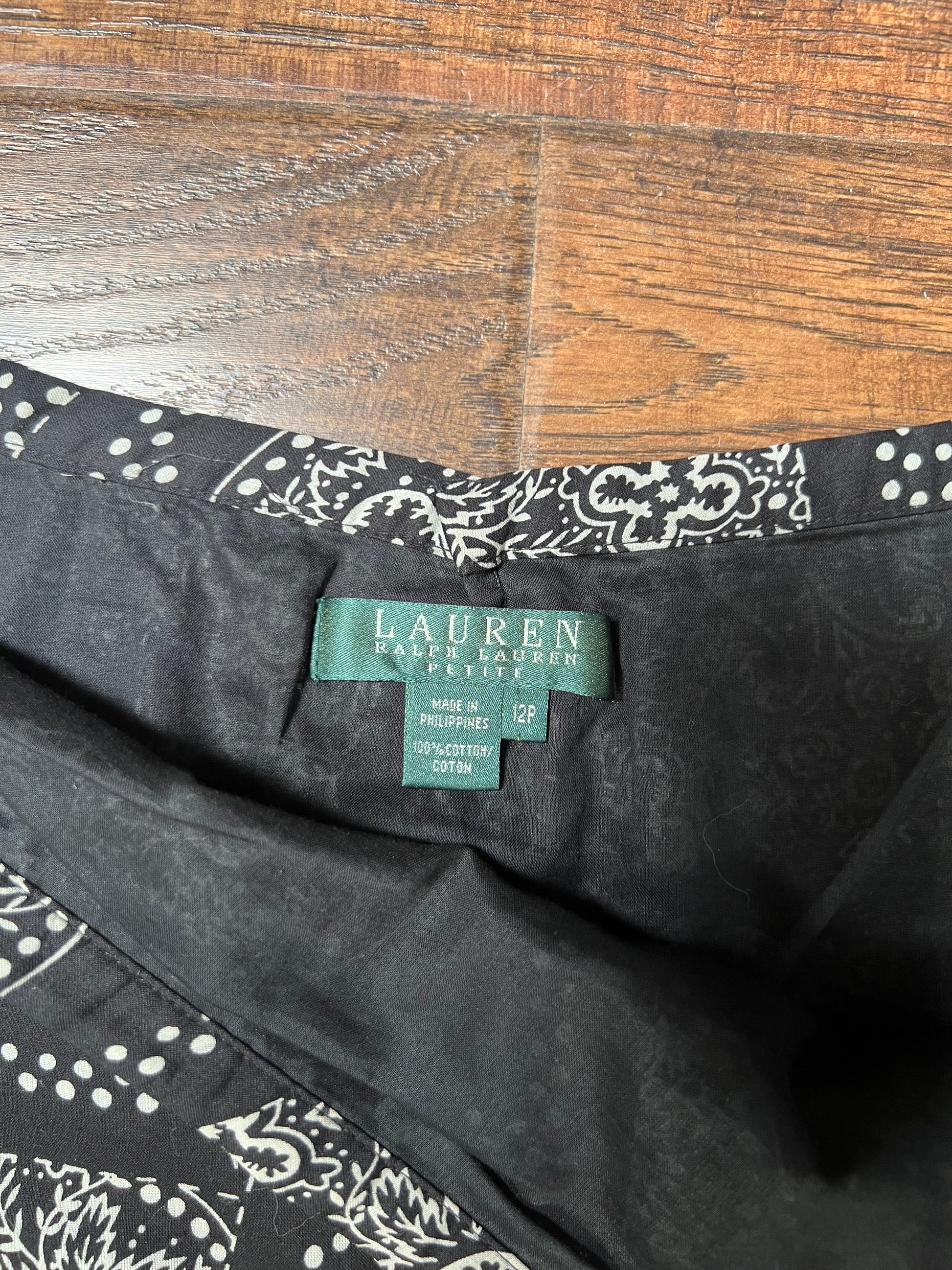 Clothing - Tiered Midi Skirt - Black & White Paisley Bandana Print - Lauren Ralph Lauren - Small
