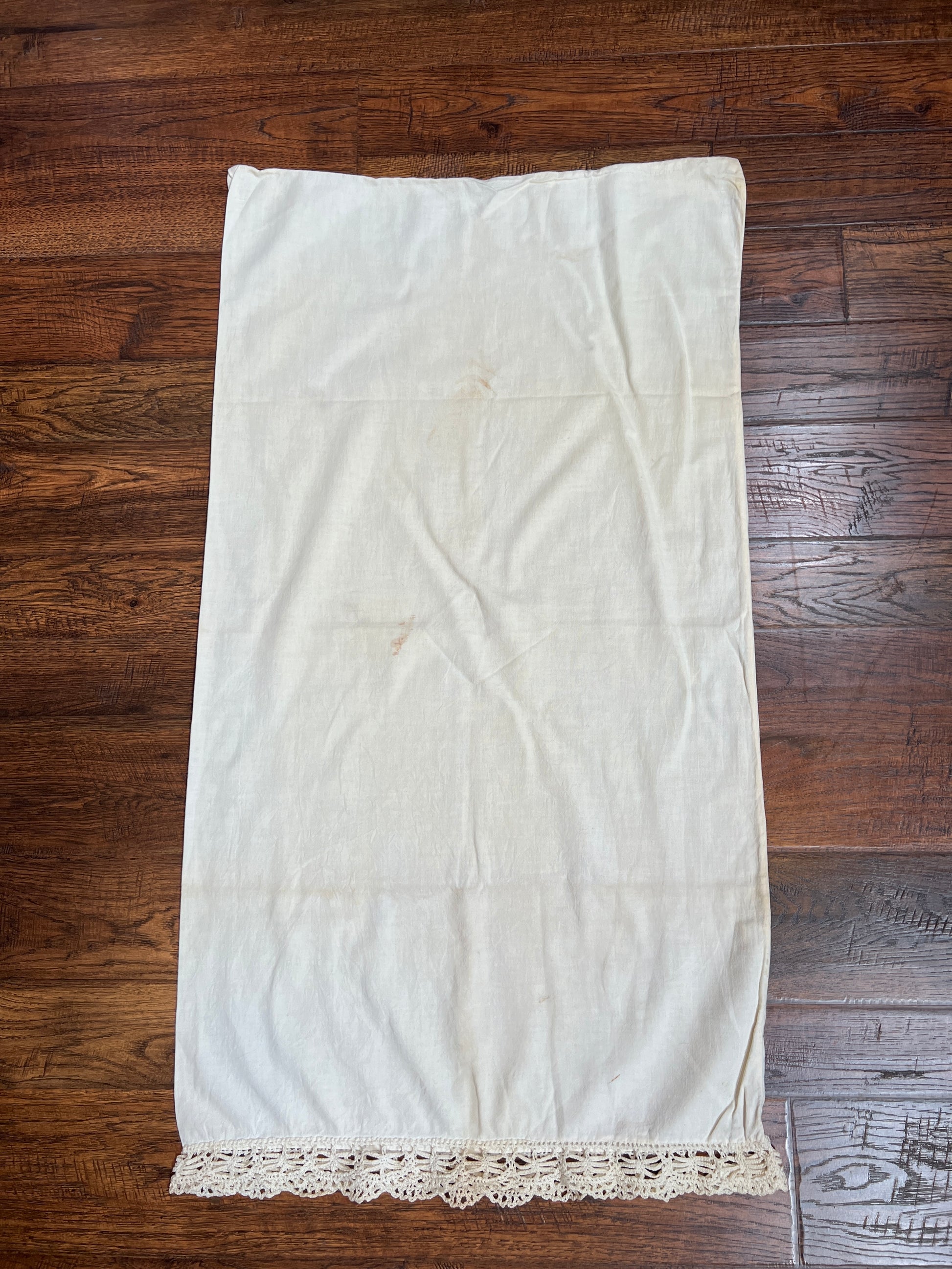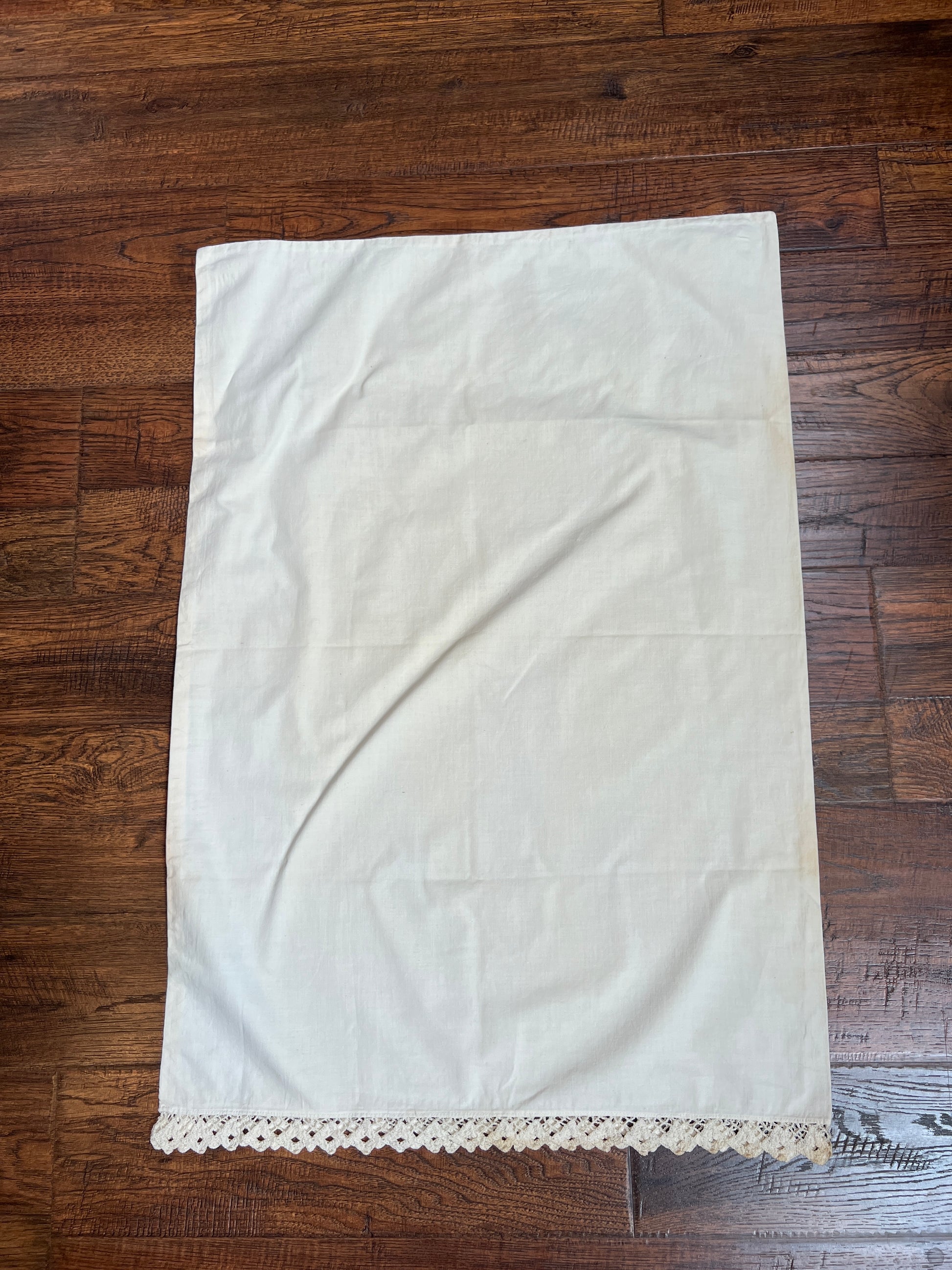 Vintage Linens - Pair of Lace Trim Pillowcases - Off White