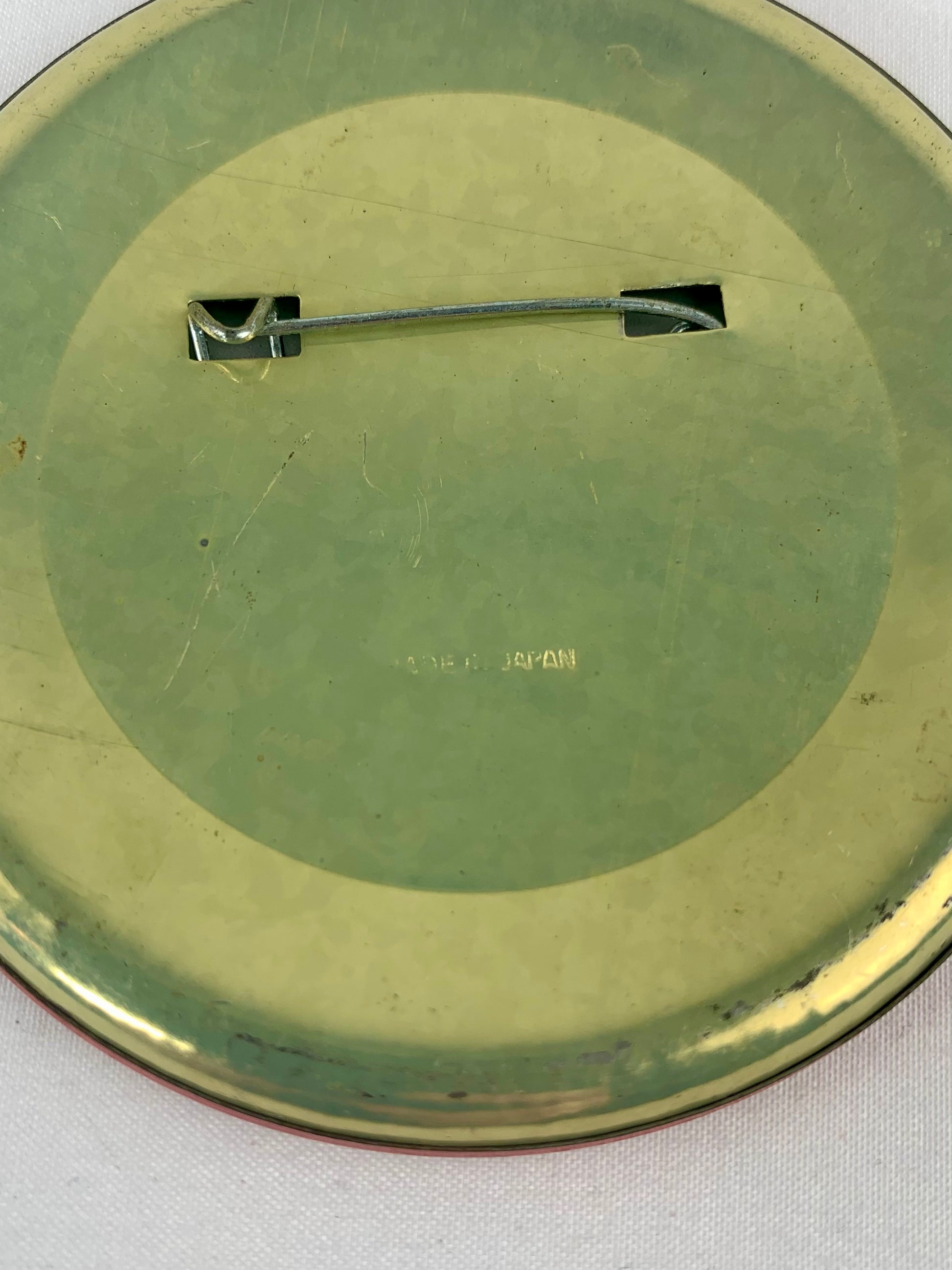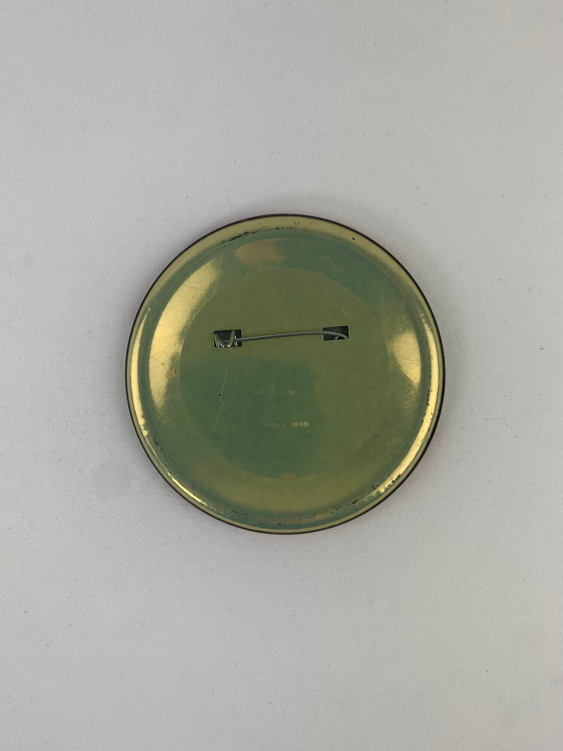 Measures 3 1/4" by 3 1/4". In good vintage condition with some minor staining on the face. Stamped Made In Japan on back.