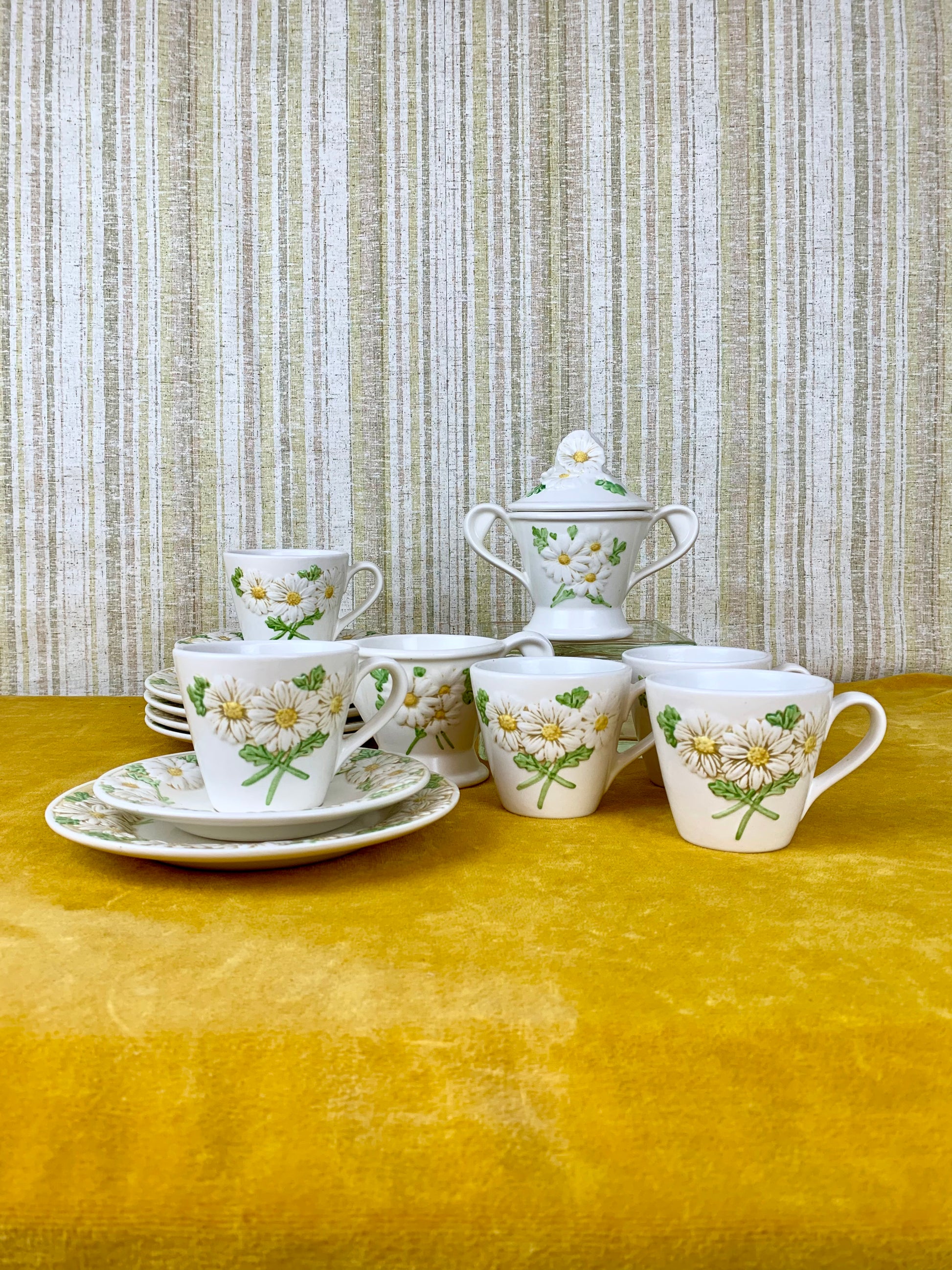 Retro Metlox Poppytrail Sculptural Daisy Breakfast Set - Made In California