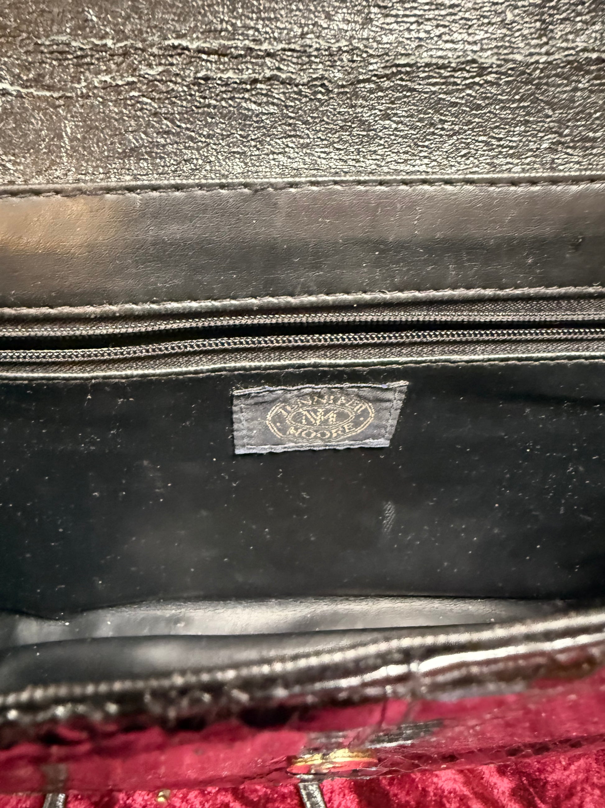 Condition: In good vintage condition. The exterior snakeskin is in great condition with some minor wear spots on the edges. The interior lining is peeling. See pictures for more details.