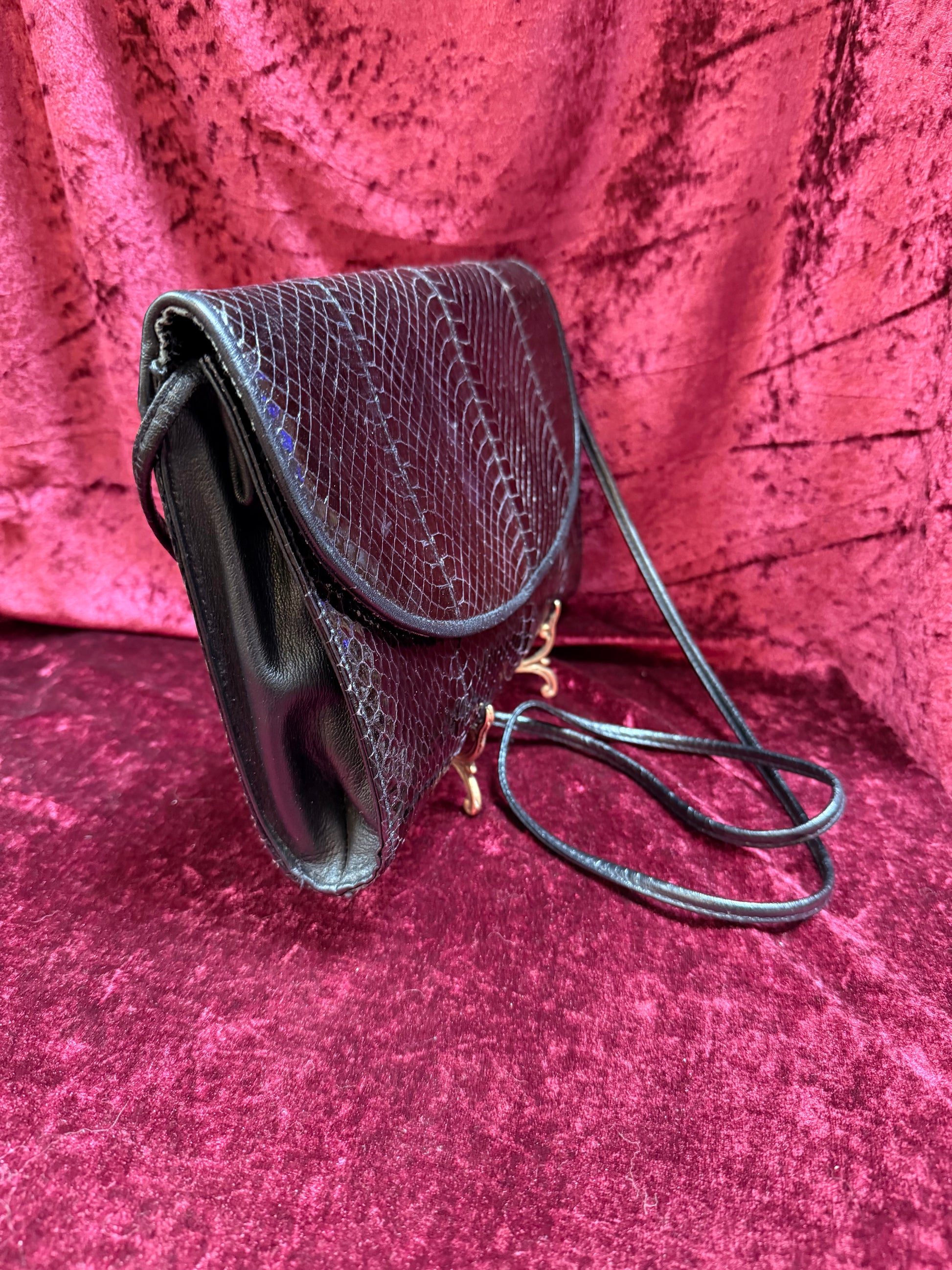 Vintage Accessories - Crossbody Evening Purse - Genuine Black Snakeskin - Jennifer Moore