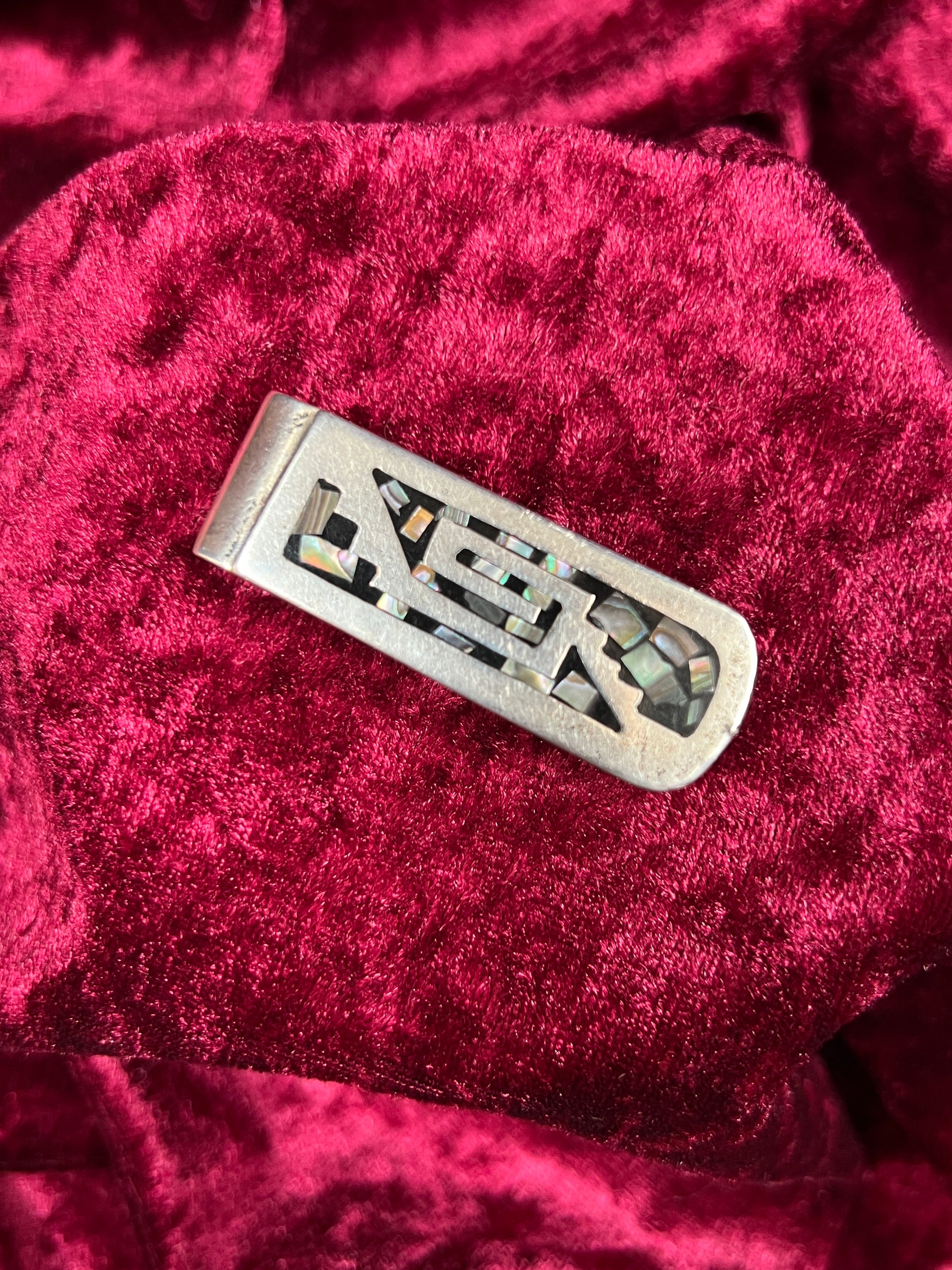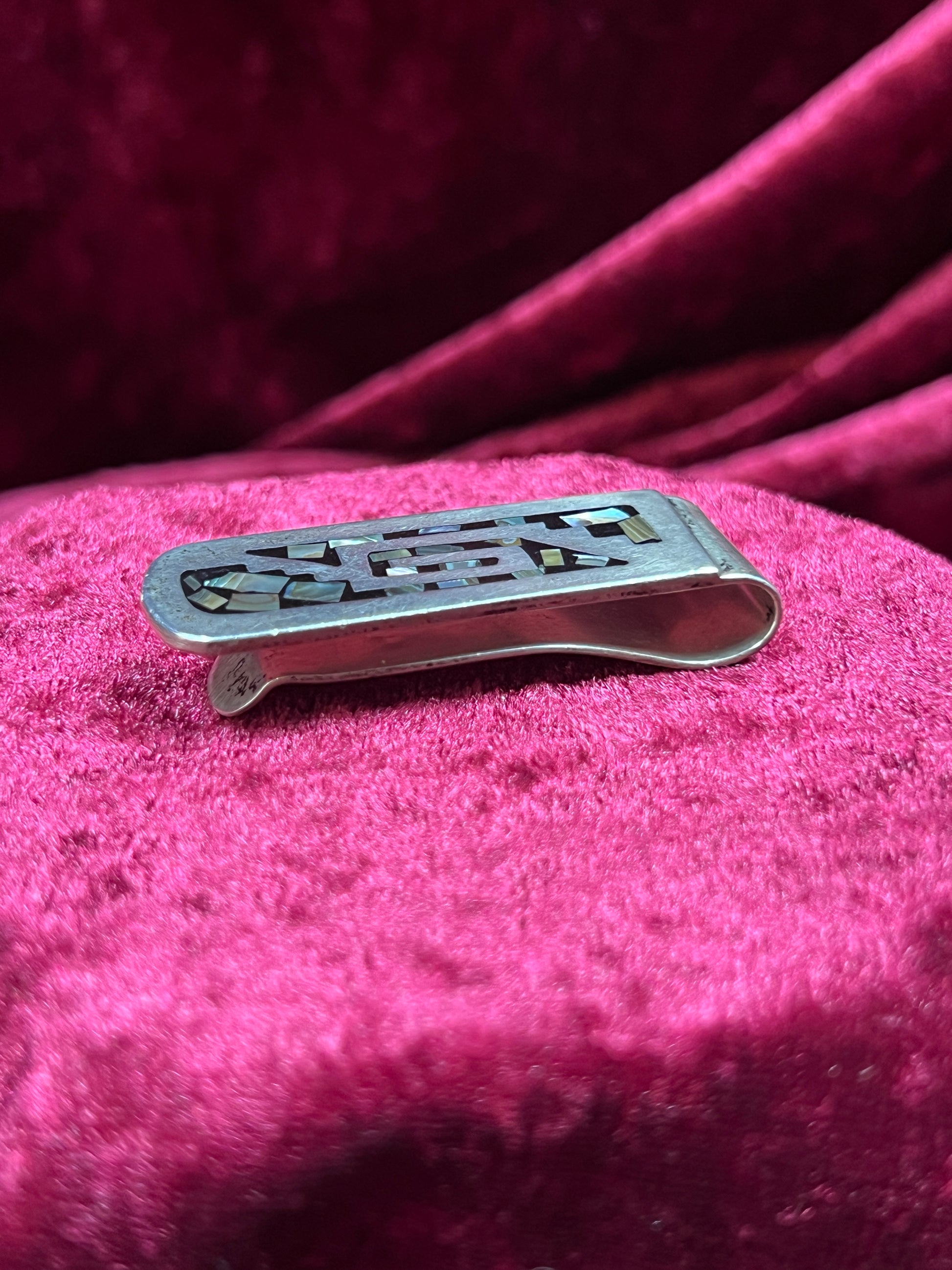 Vintage Accessories - Money Clip - 925 Sterling Silver with Inlaid Abalone Shell - Mexico
