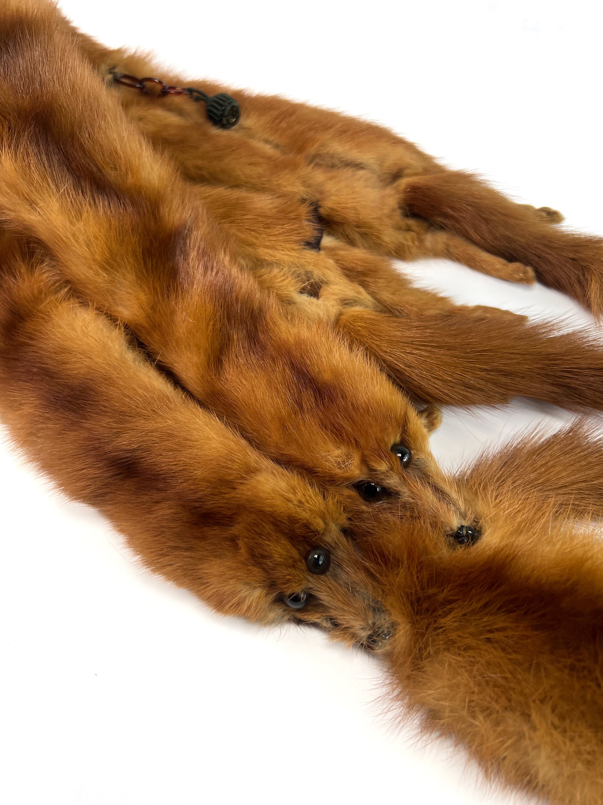 Vintage Accessories - Fur Shoulder Stole - 5 Red Foxes