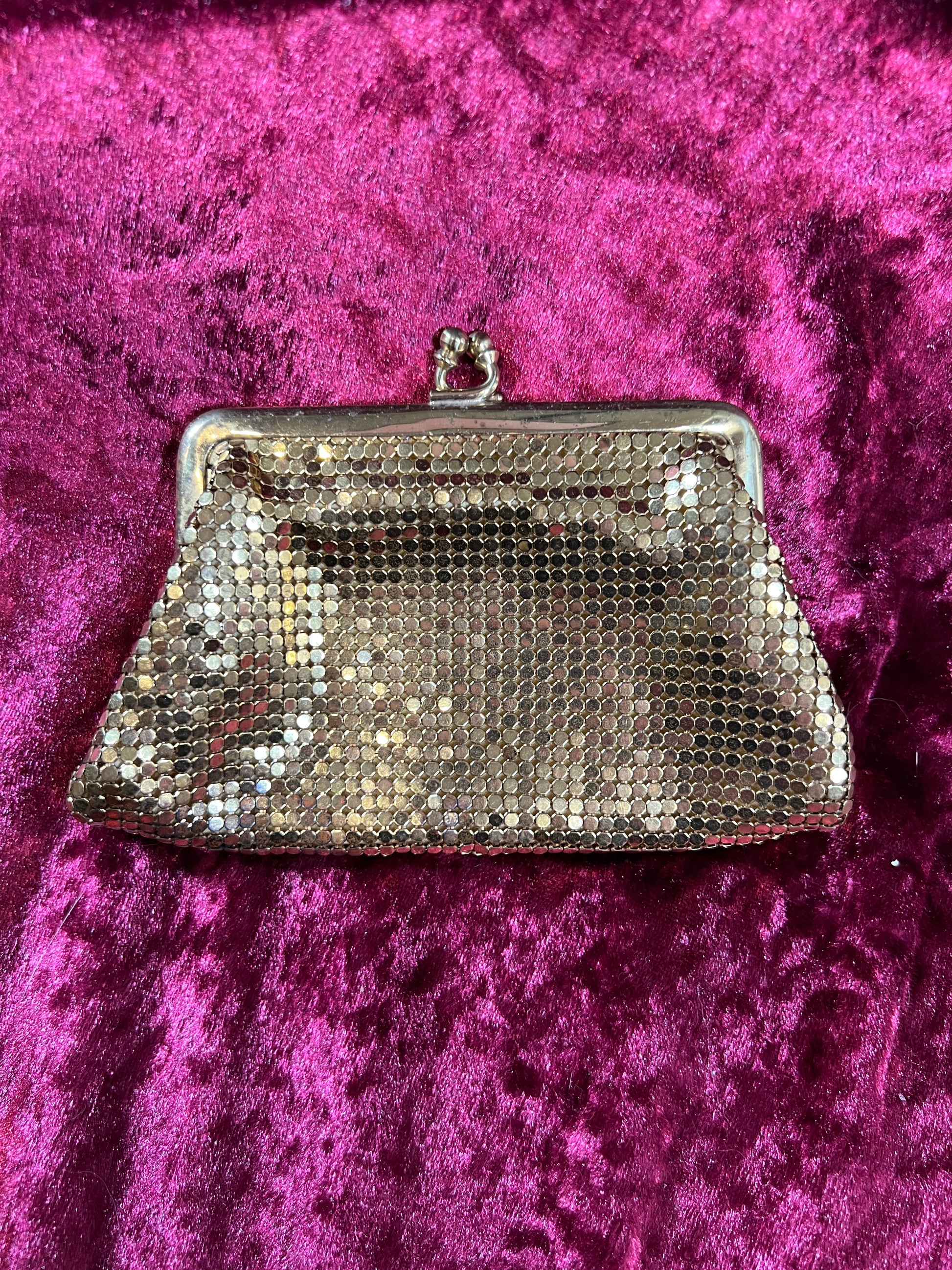 Vintage Accessory - Coin Purse - Gold Metal Mesh - Kiss Lock Closure - Whiting & Davis Co.