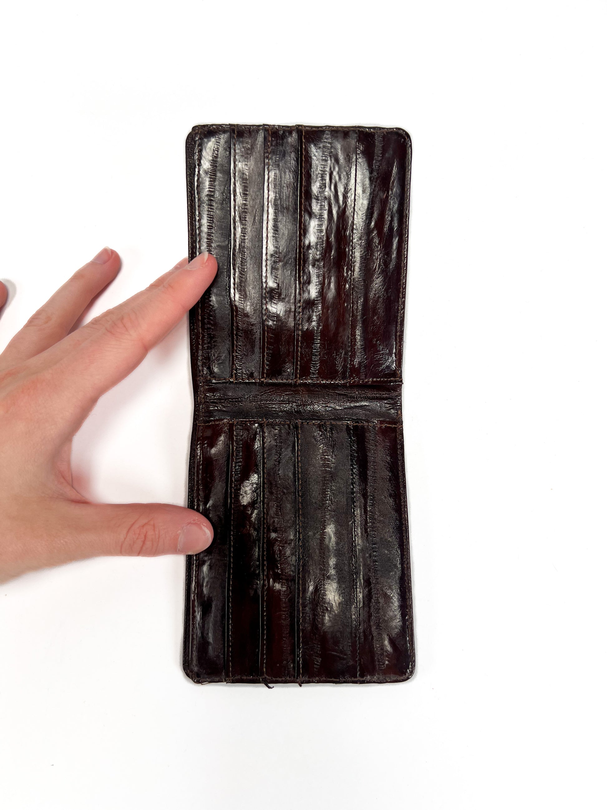Vintage Bifold Wallet - Deep Red-Brown - Genuine Eelskin - Made In Korea