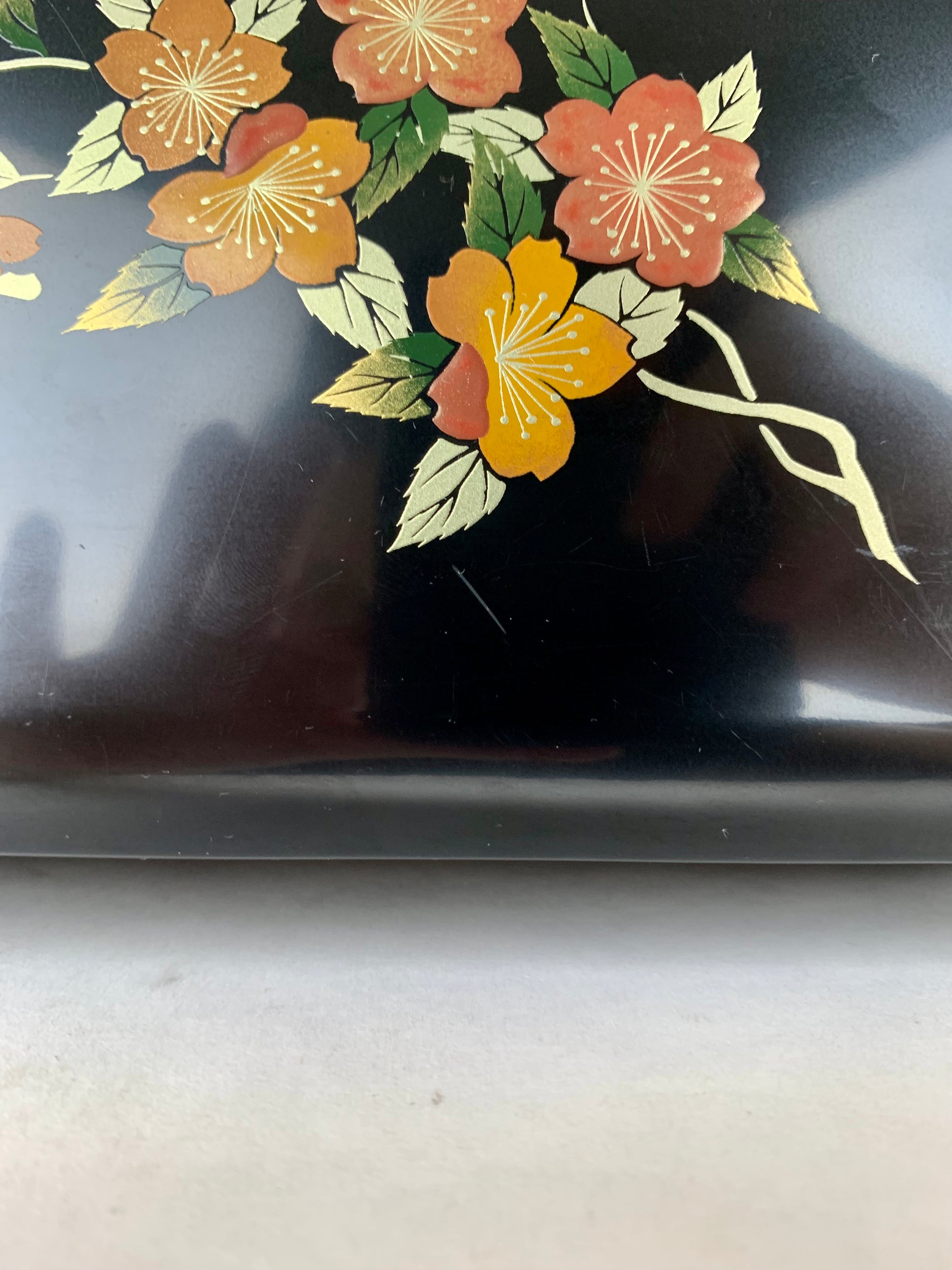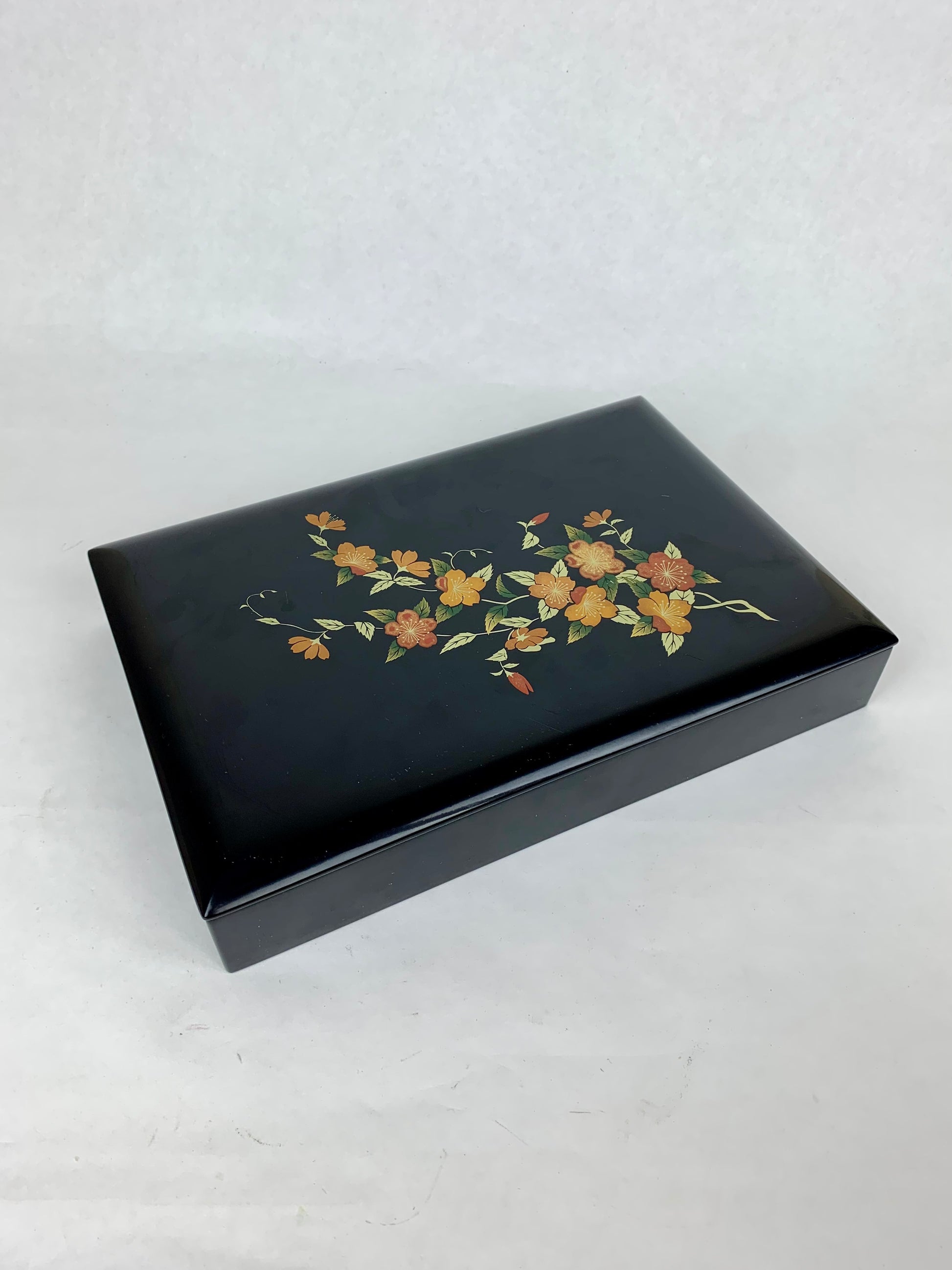 Vintage Black Lacquerware Trinket Box - Orange Floral Branch