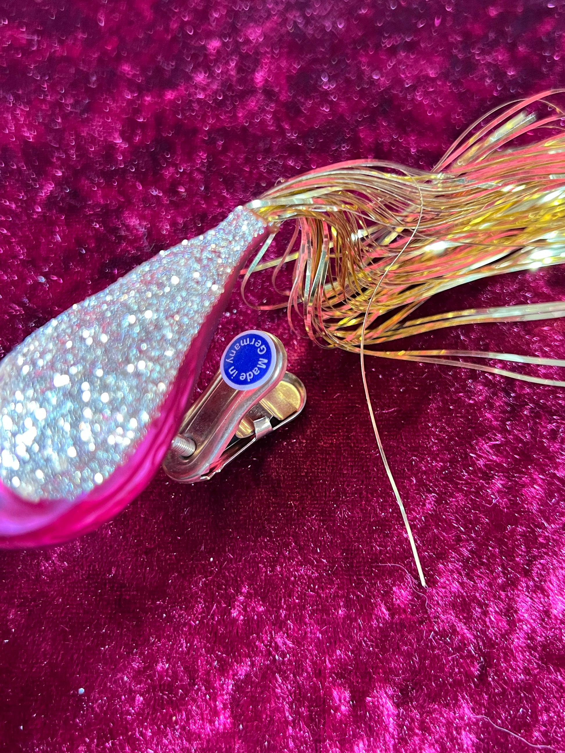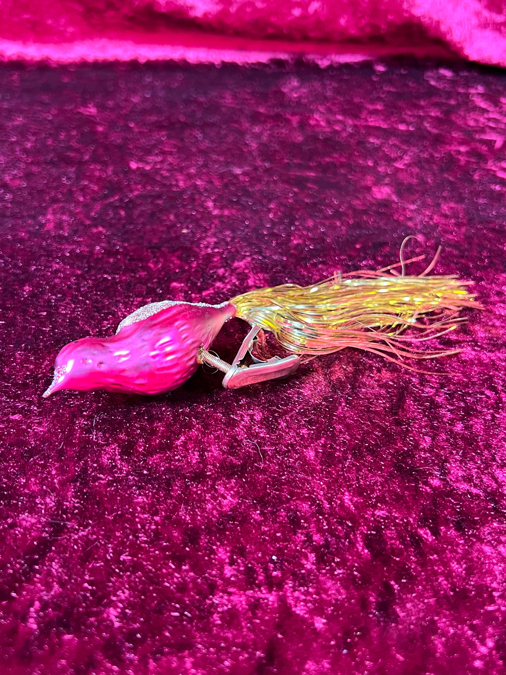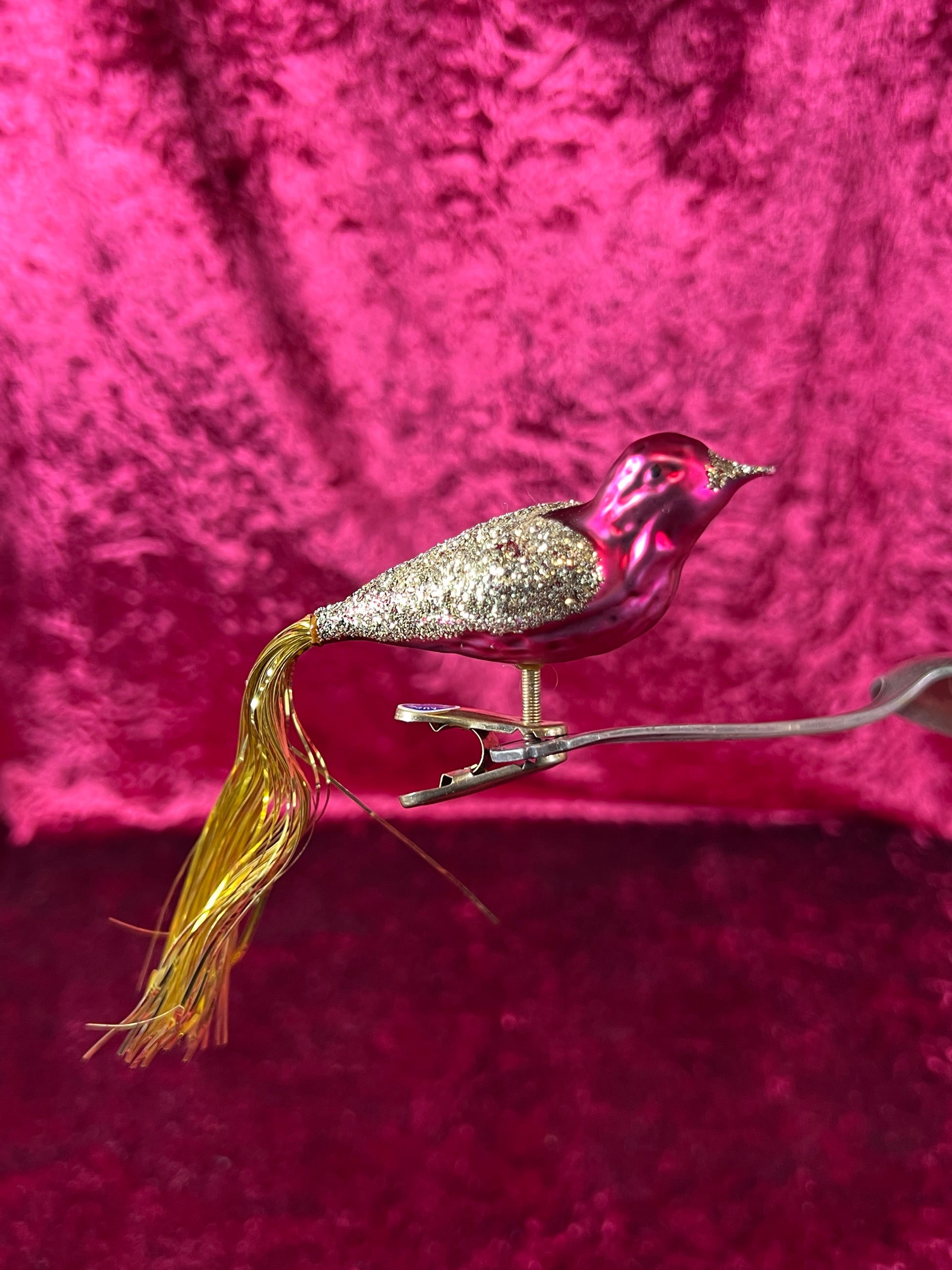 Vintage Christmas - Glass Clip-On Ornament - Burgundy Cardinal with Gold Tinsel Tail - German