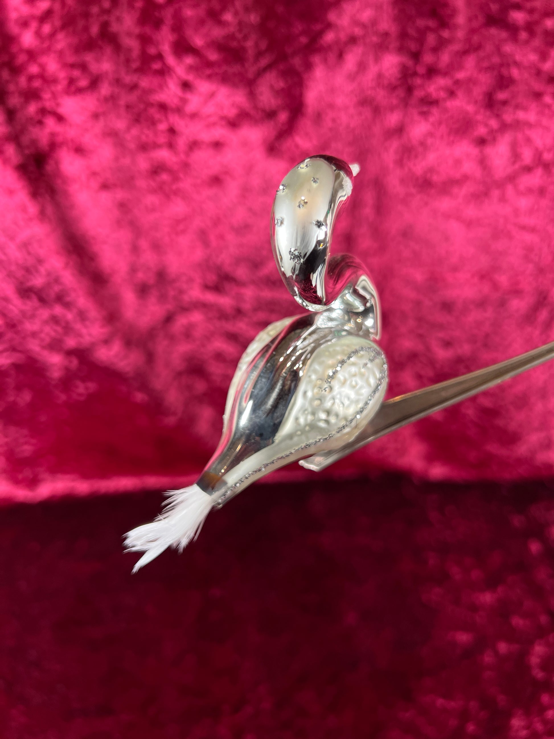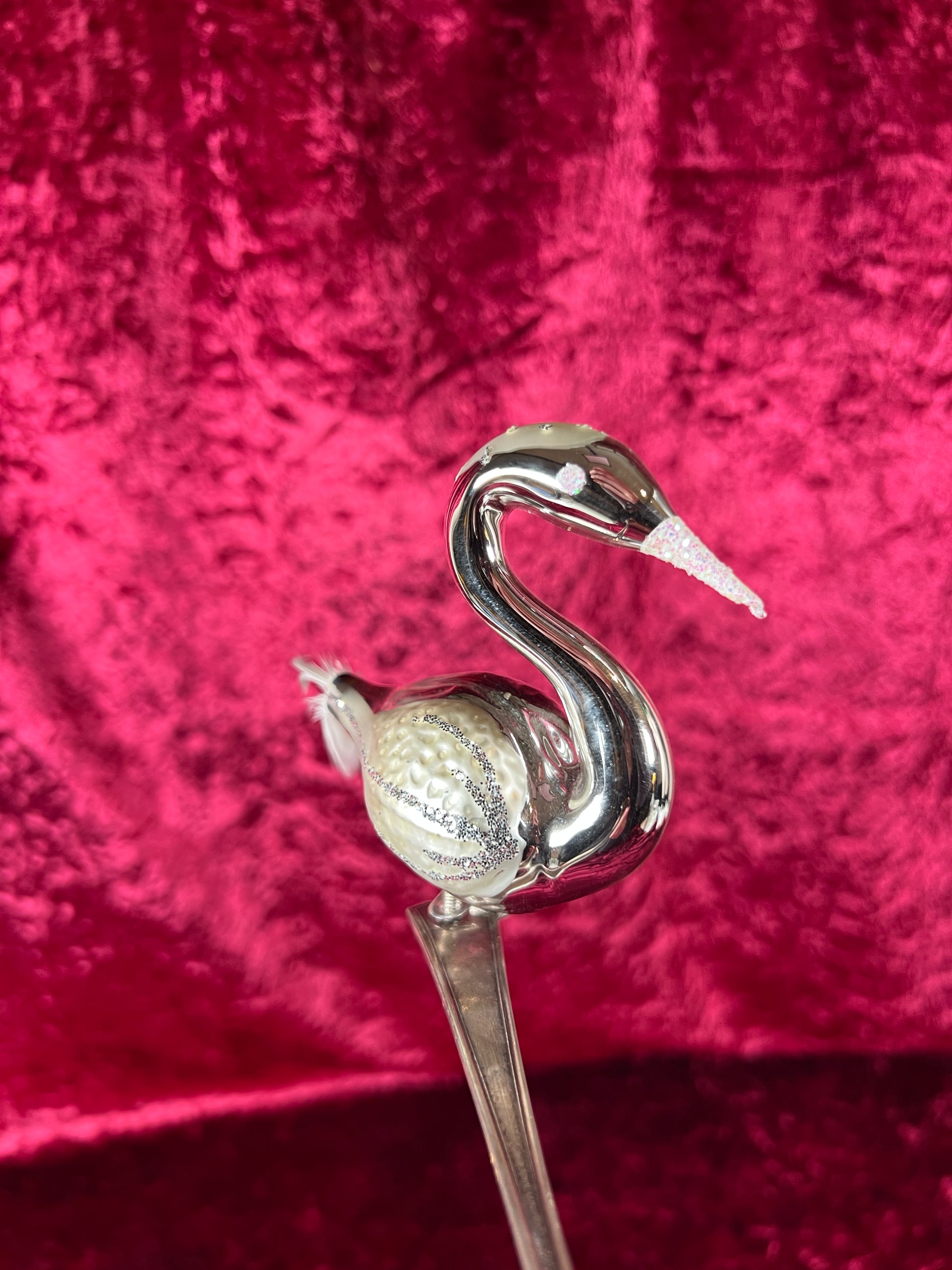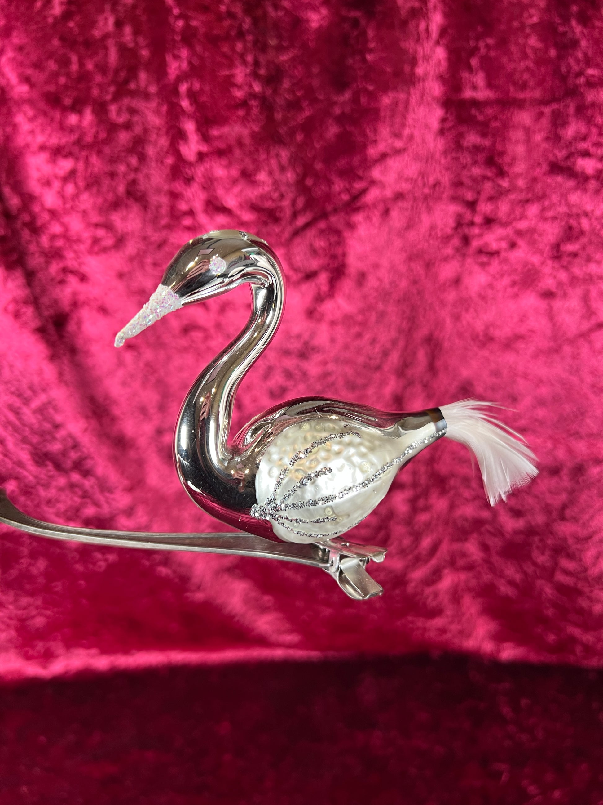 Vintage Christmas - Glass Clip-On Ornament - Silver Swan with Feather Tail