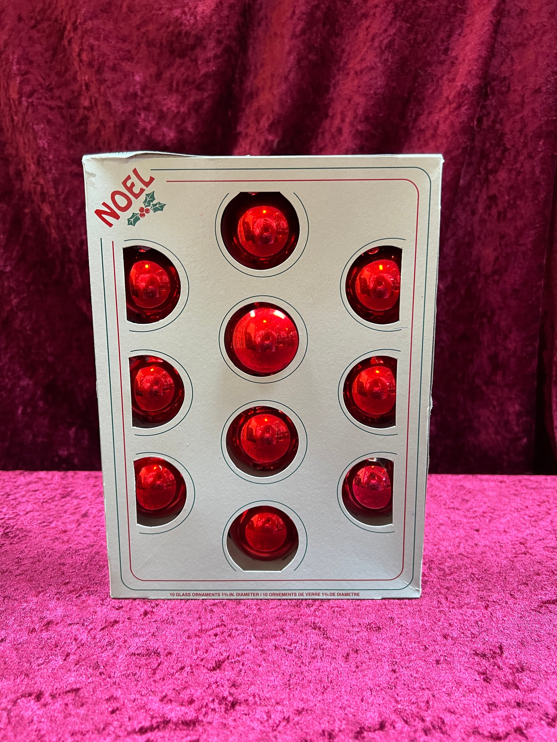 Vintage Christmas - Glass Ornament Set - Red - Noel
