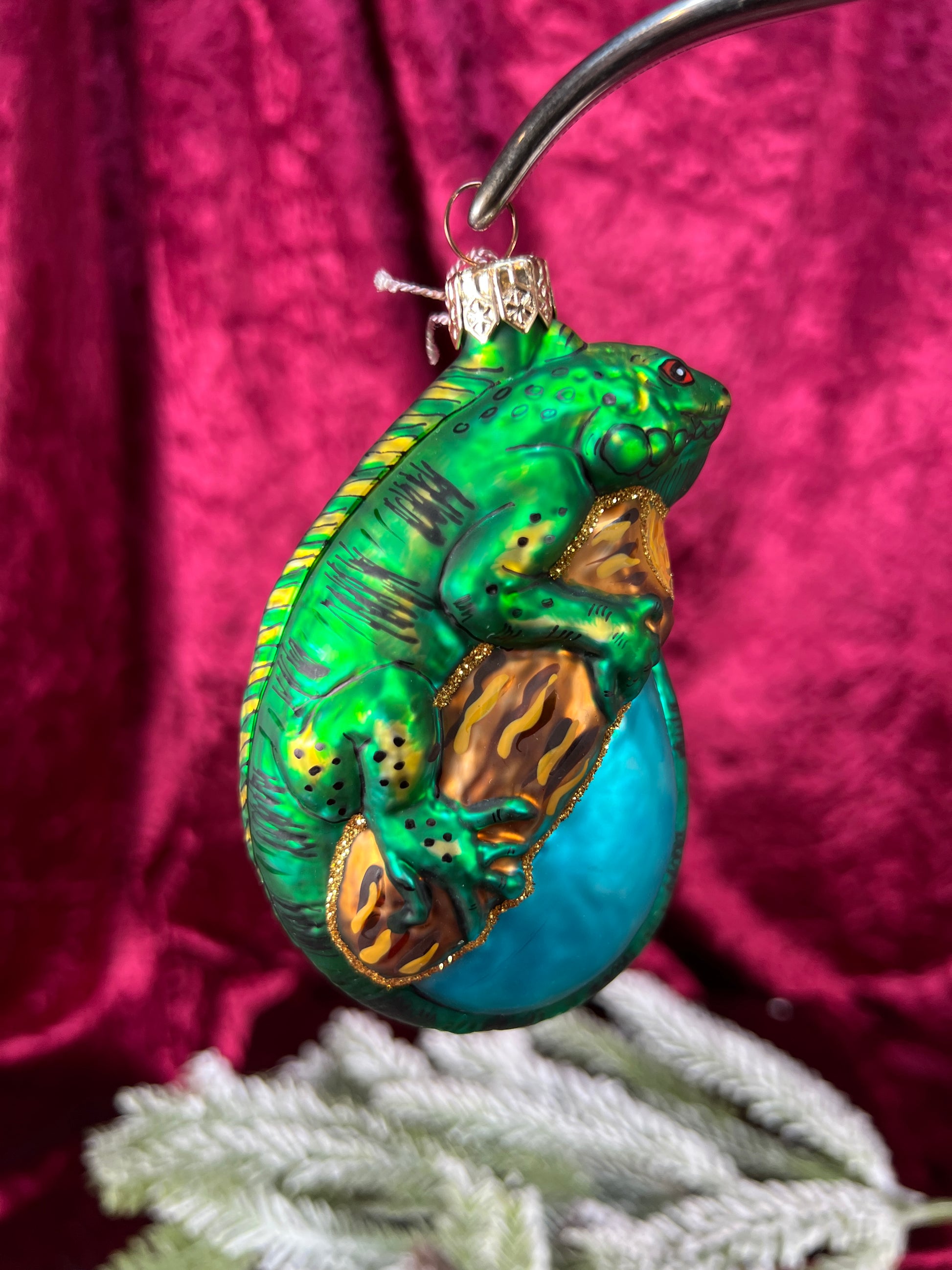 Vintage Christmas - Handblown Glass Ornament - Bright Green Lizard - Ornimals by Discovery Channel - Poland