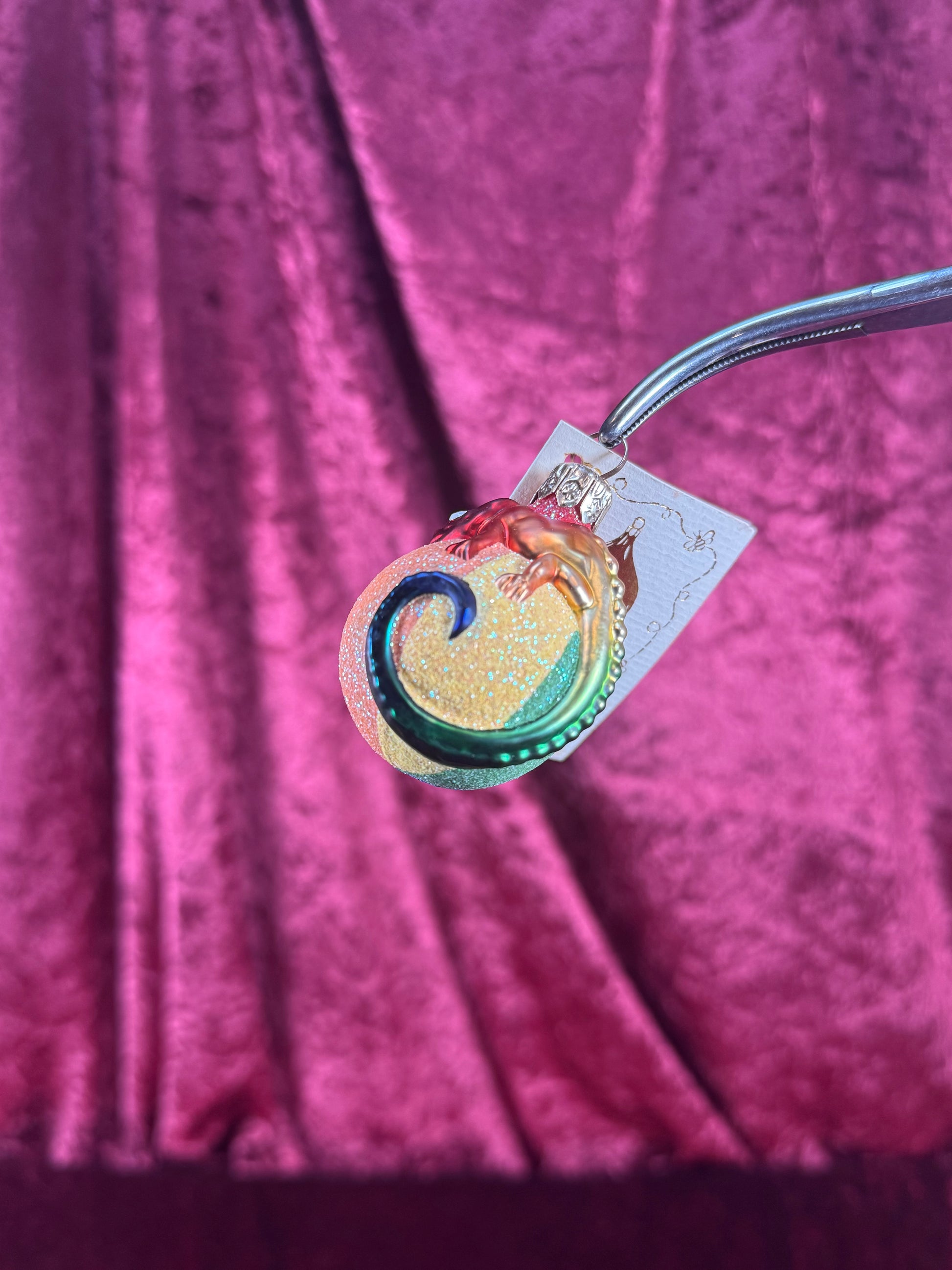 Vintage Christmas - Handblown Glass Ornament - Chameleon On Rainbow Ball - Patricia Breen - Poland