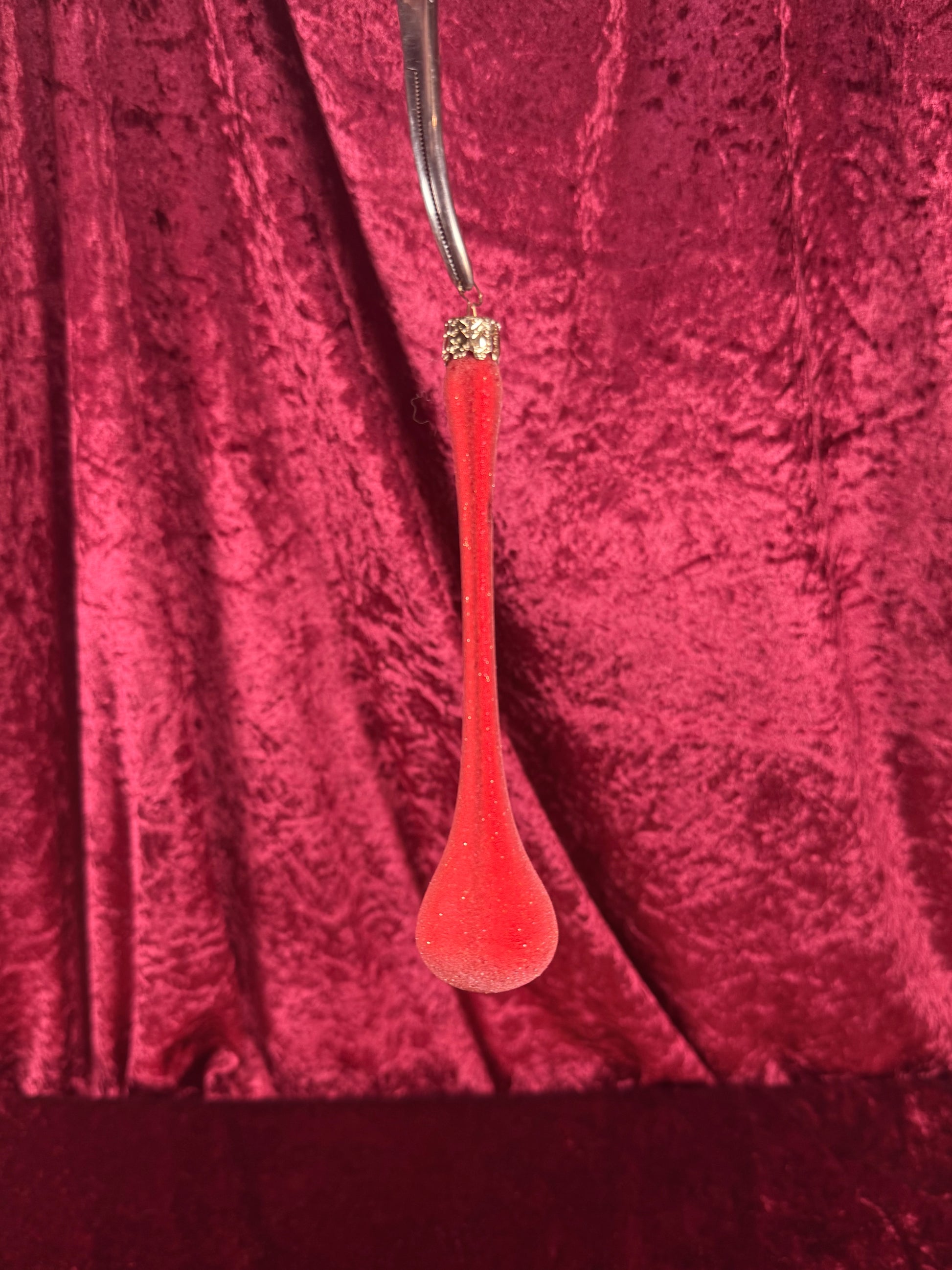 Vintage Christmas - Handblown Glass Ornament - Frosted Red Icicle Teardrop - 6.25"