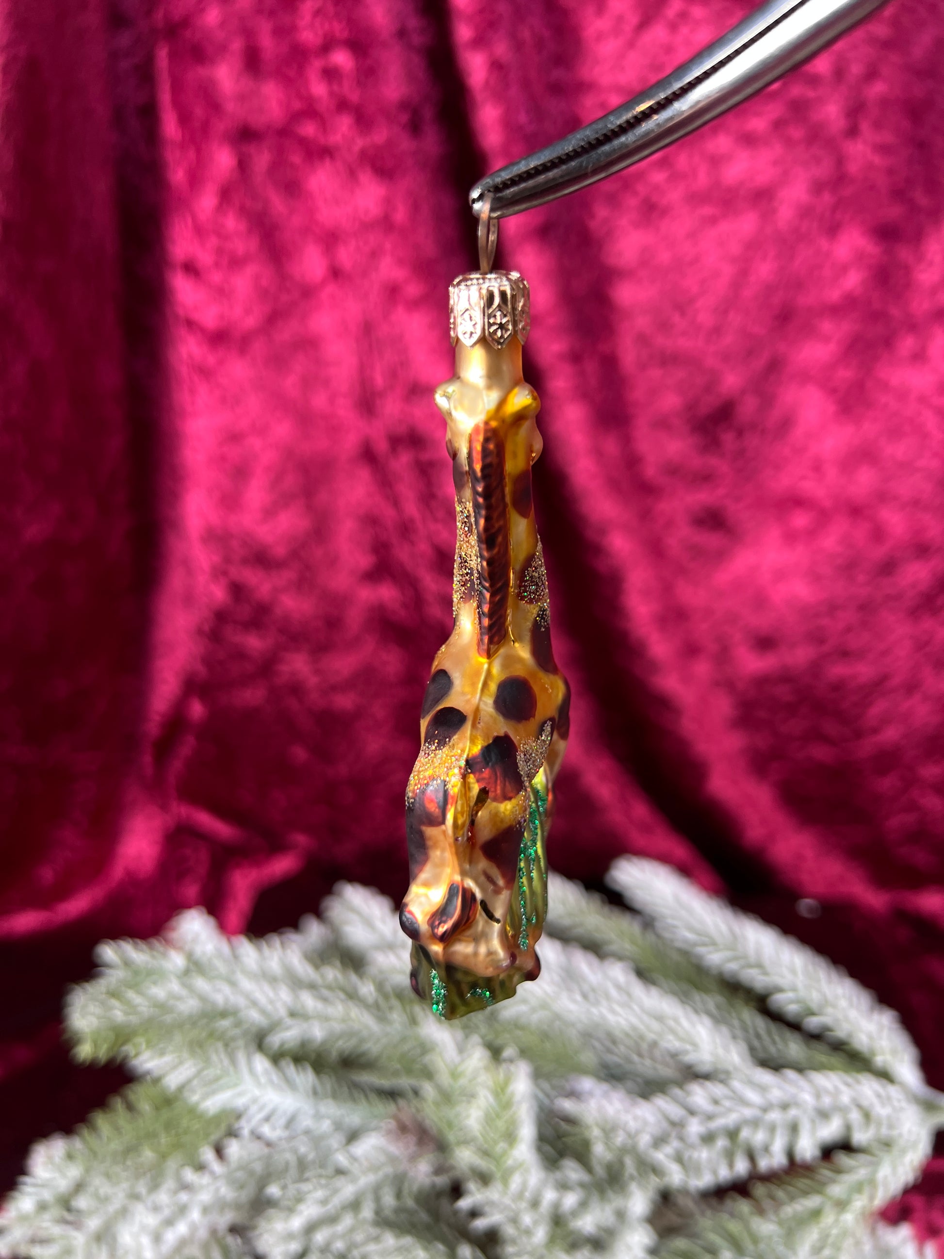 Vintage Christmas - Handblown Glass Ornament - Giraffe In The Grass
