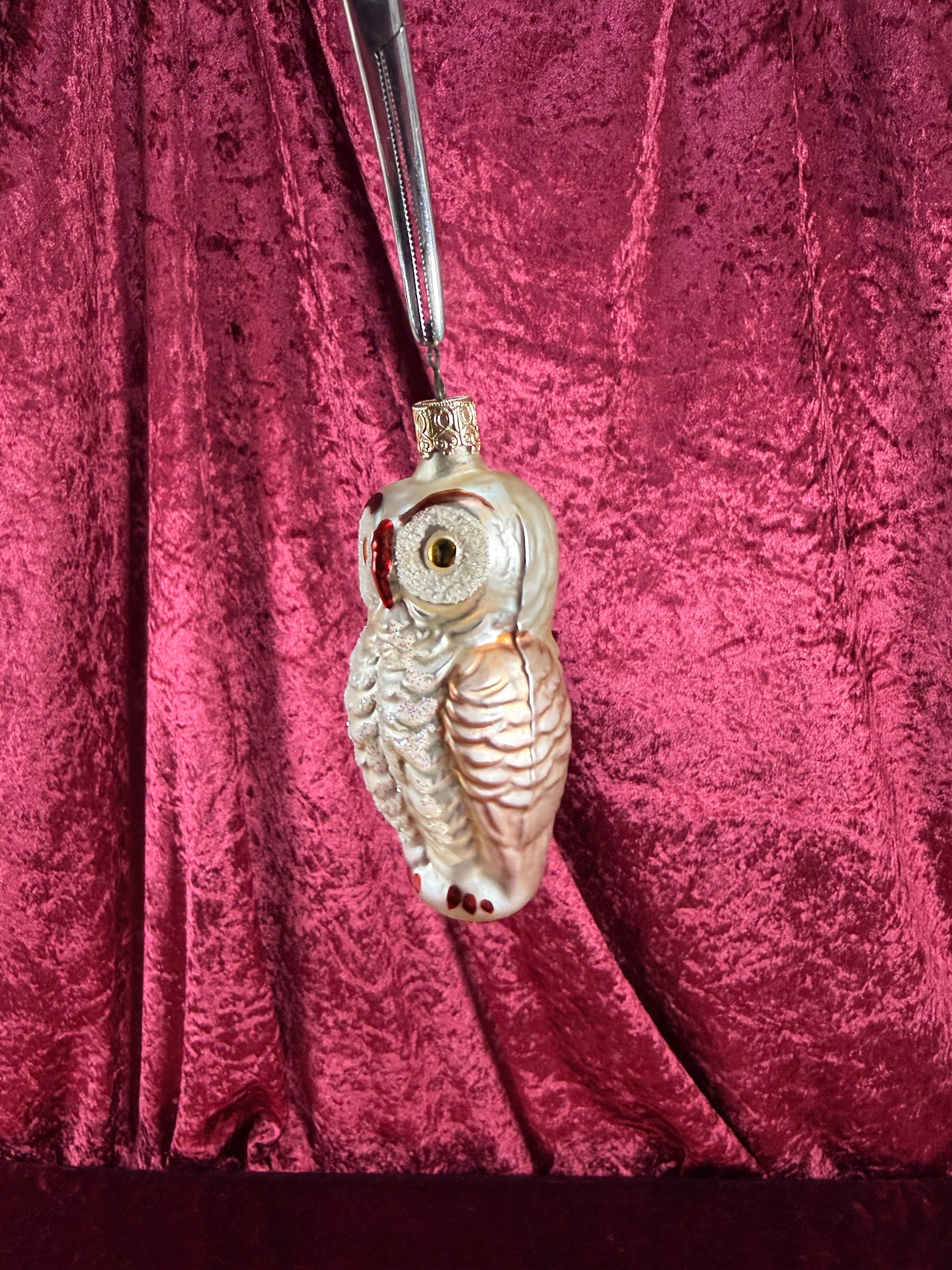 Vintage Christmas - Handblown Glass Ornament - Glitter Owl - Inge Glas - Germany