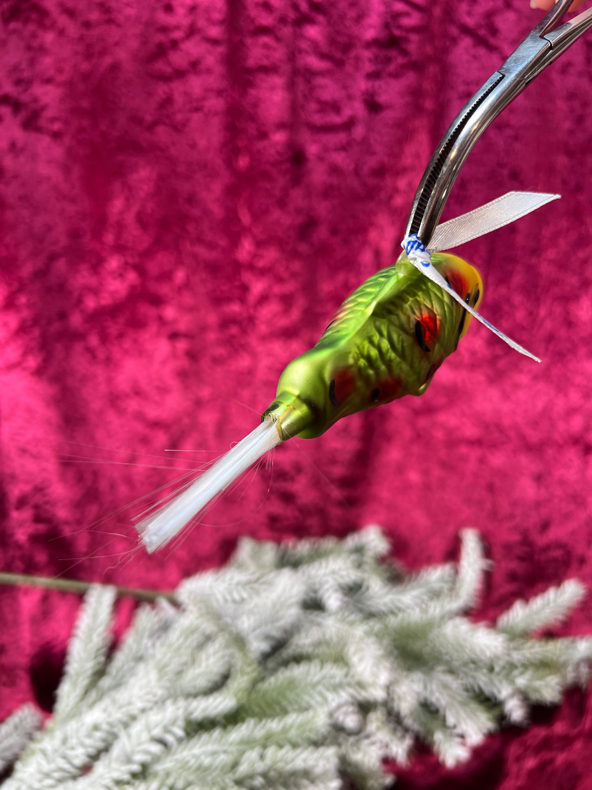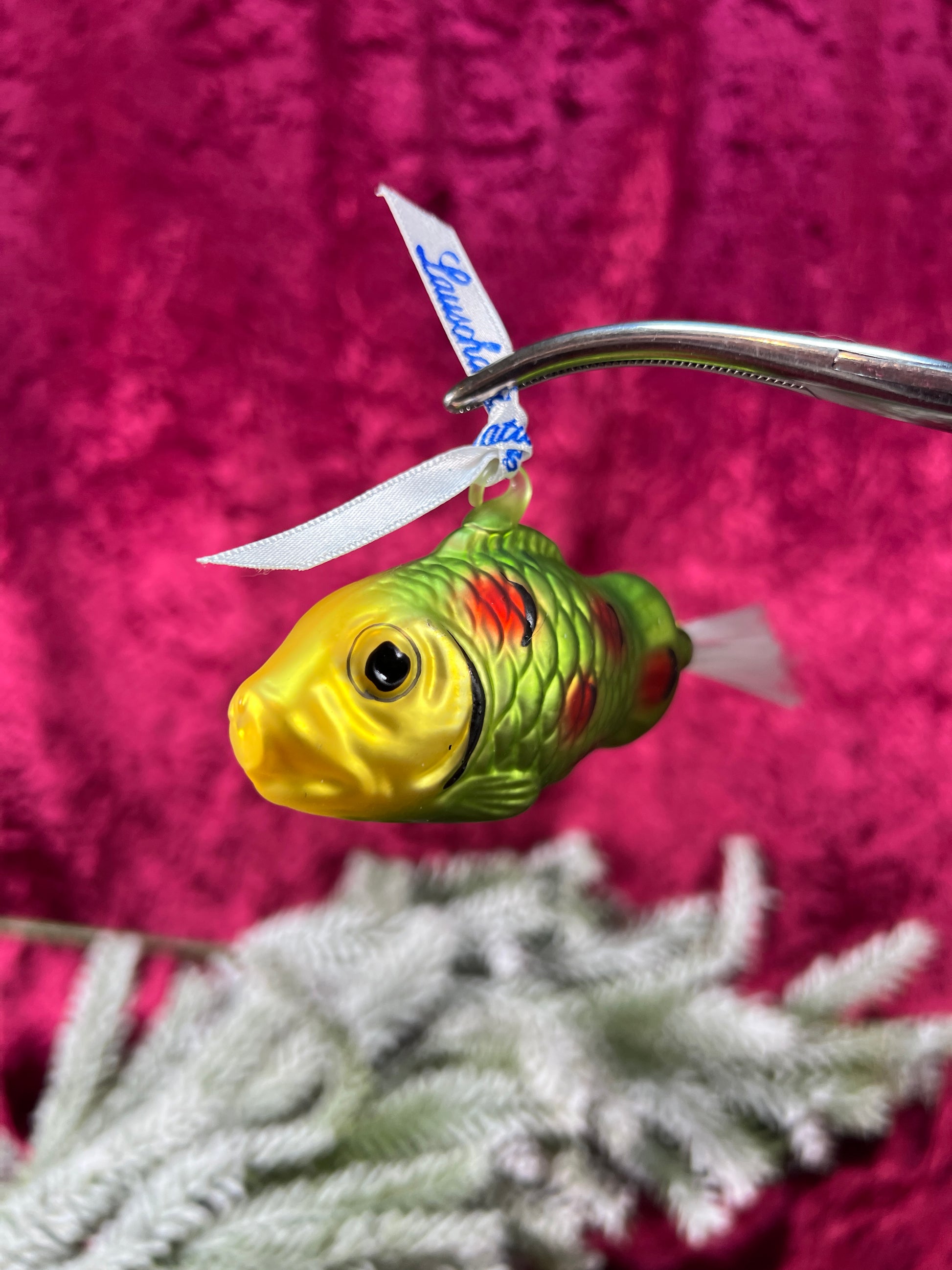 Vintage Christmas - Handblown Glass Ornament - Green Fish - Lauscha - Made In Germany