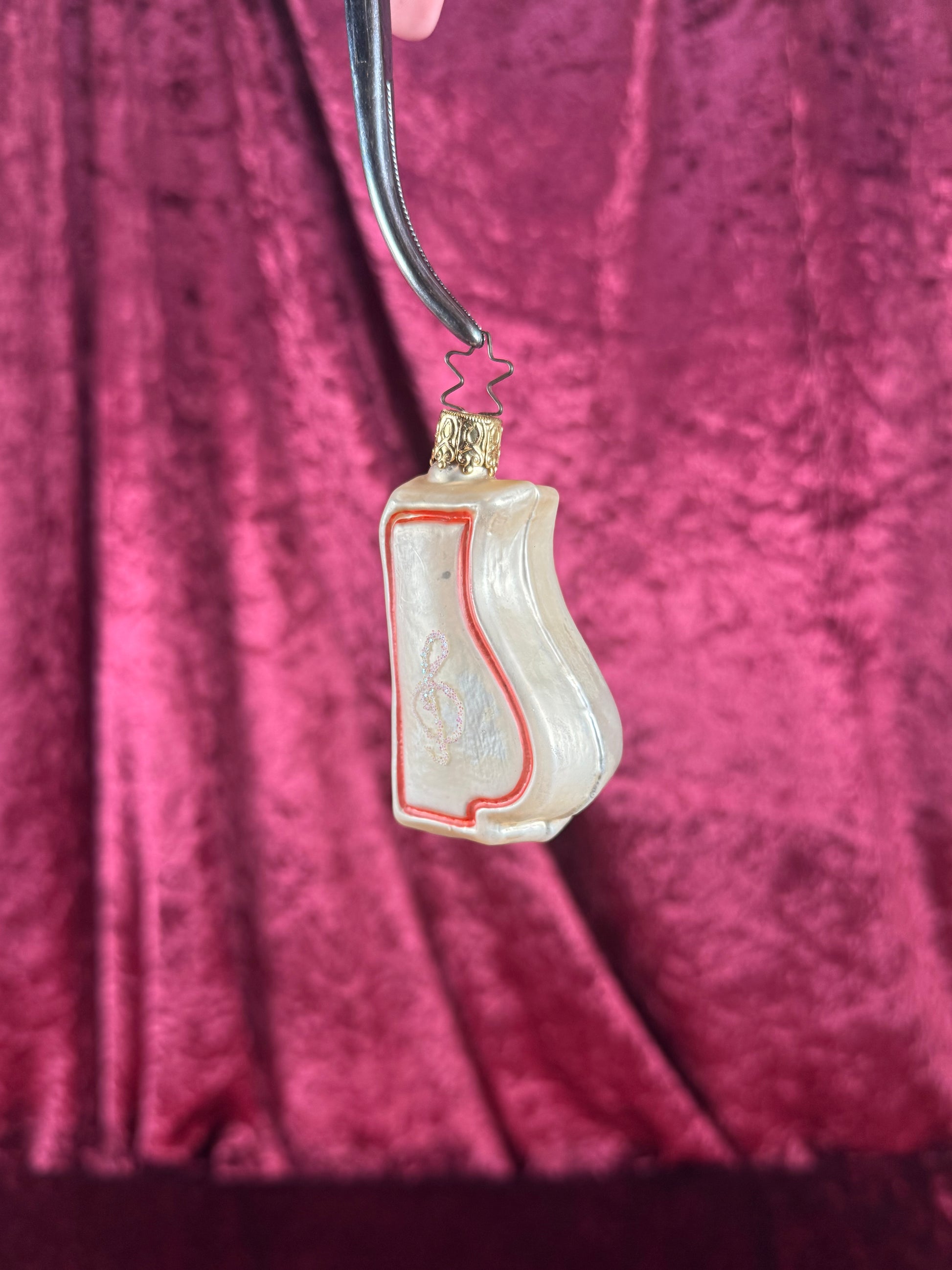 Vintage Christmas - Handblown Glass Ornament - Lyre Music Instrument - Inge Glas - Germany