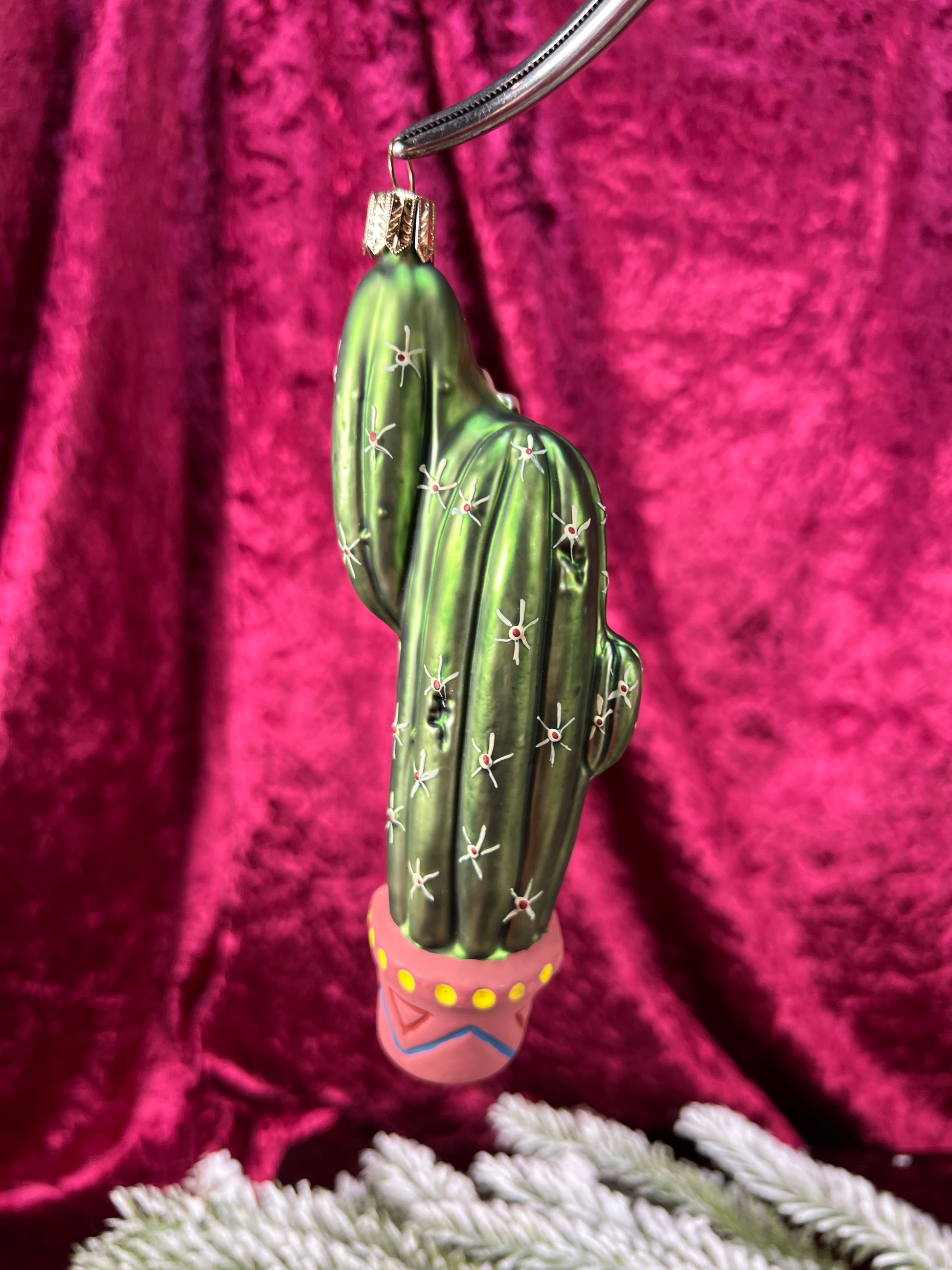 Vintage Christmas - Handblown Glass Ornament - Potted Flowering Cactus - Germany
