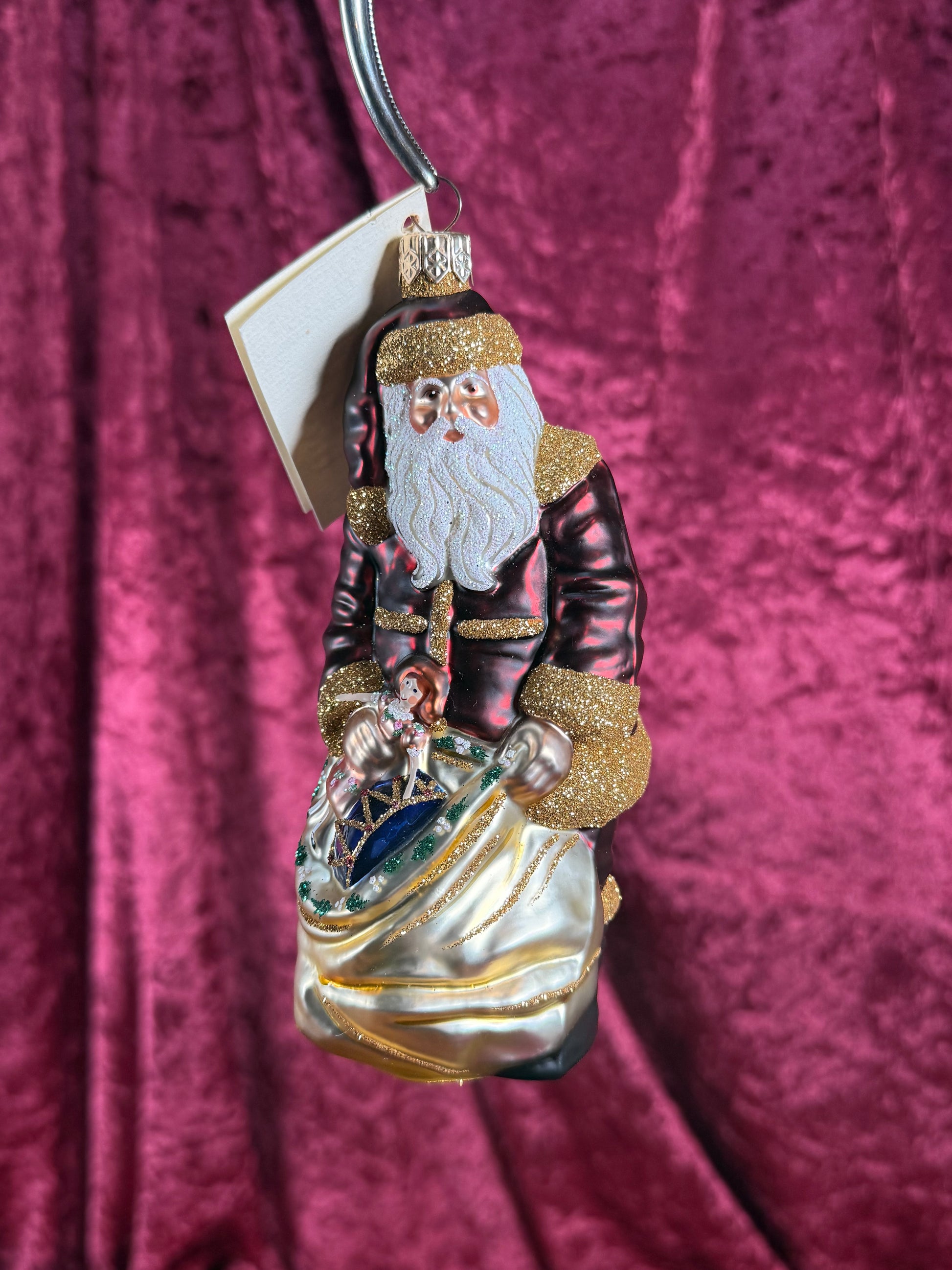 Vintage Christmas - Handblown Glass Ornament - Red Santa Claus with Toy Sack - Patricia Breen - Poland