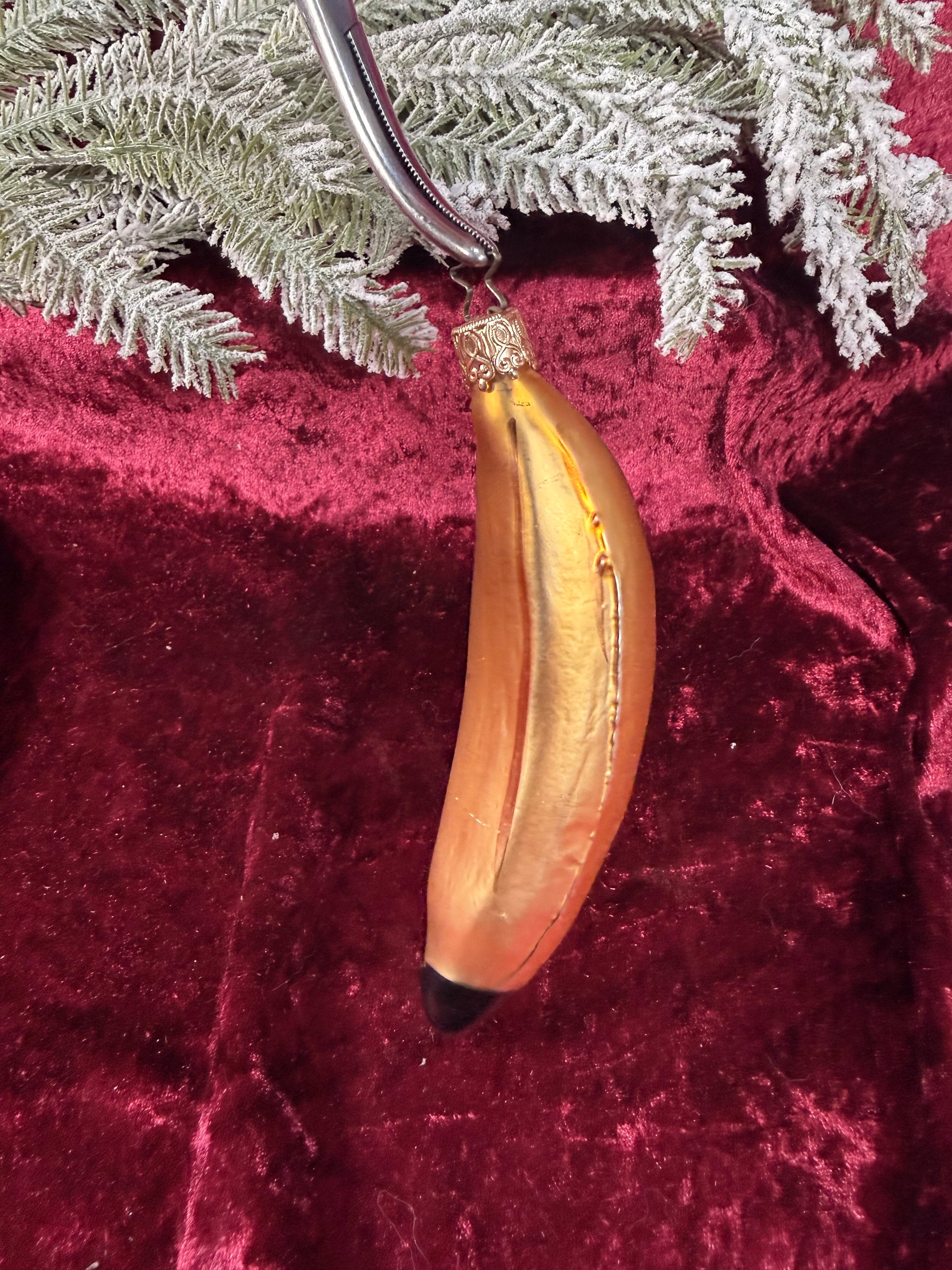 Vintage Christmas - Handblown Glass Ornament - Yellow Banana - Inge Glas - Germany