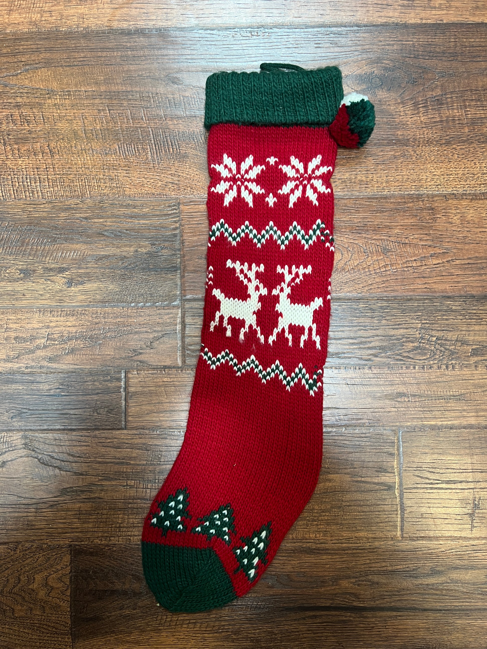 Vintage Christmas - Knit Stocking - White Reindeer on Red