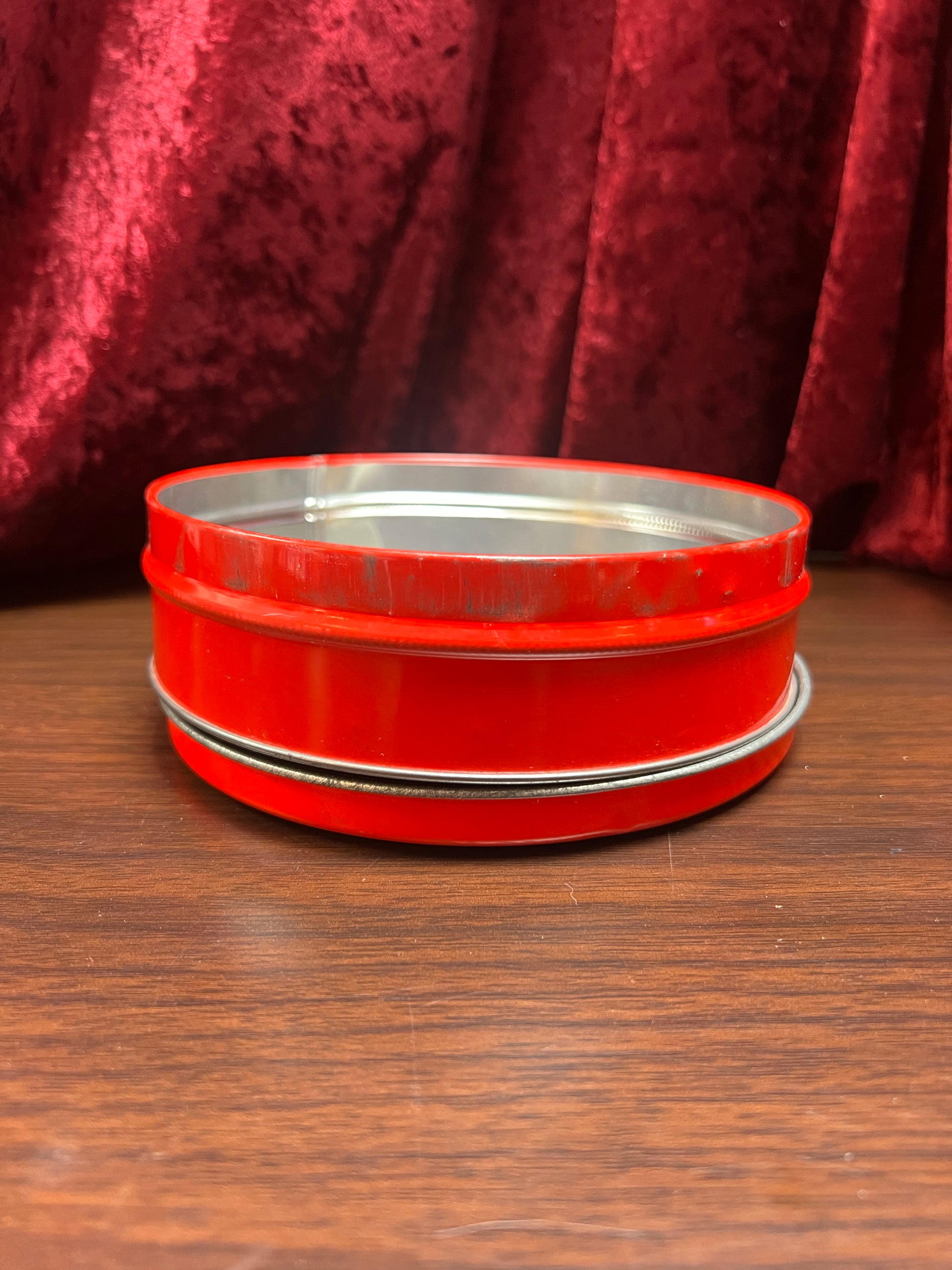 Condition: Surface scratching on lid and body of tin. Large scratch on the lid. One dent on the side. Tin is empty. See pictures.